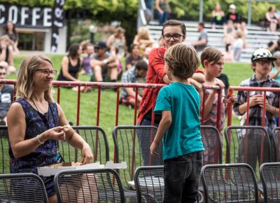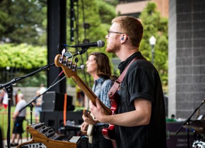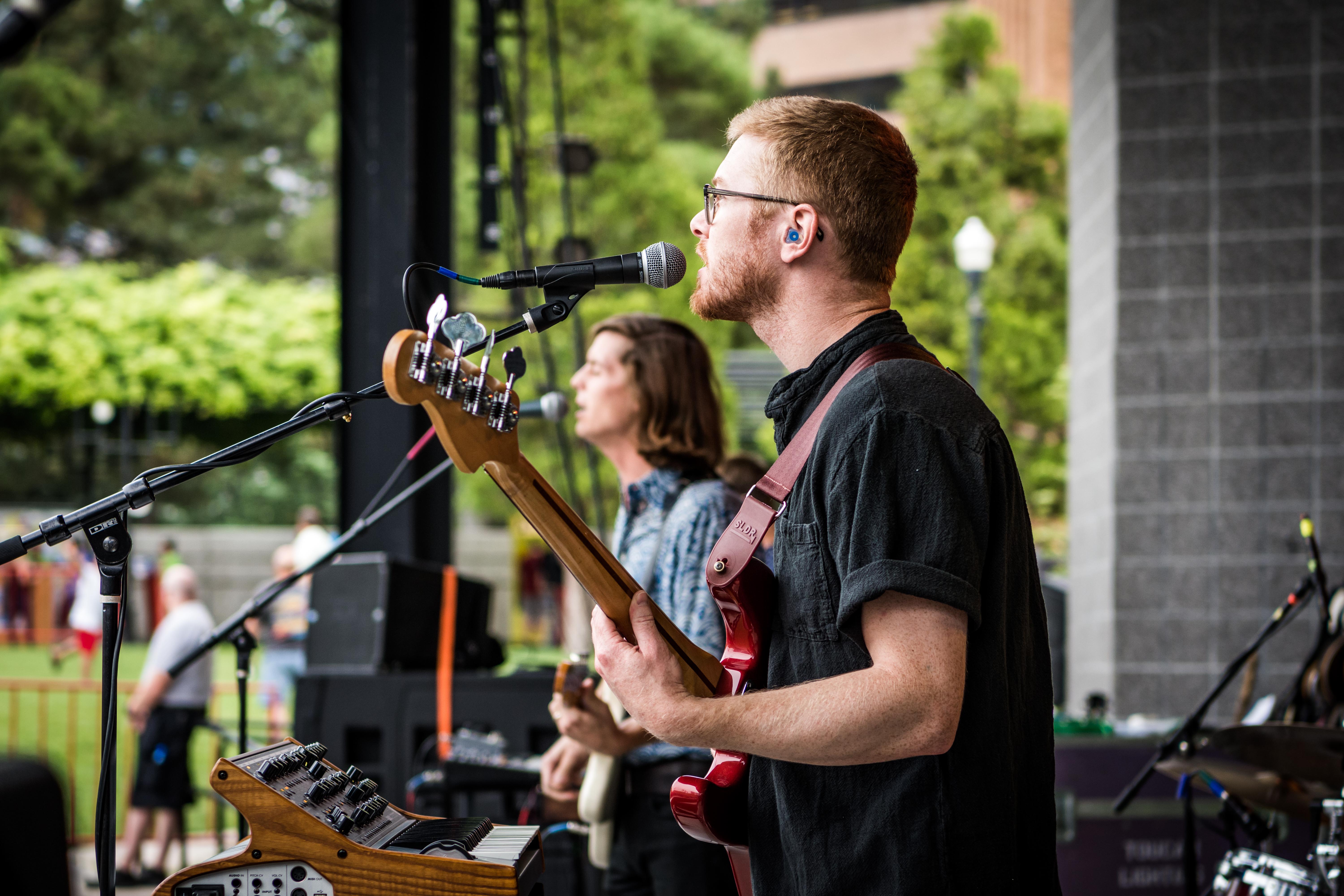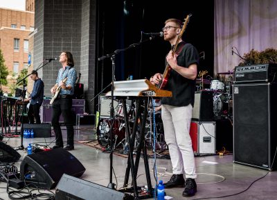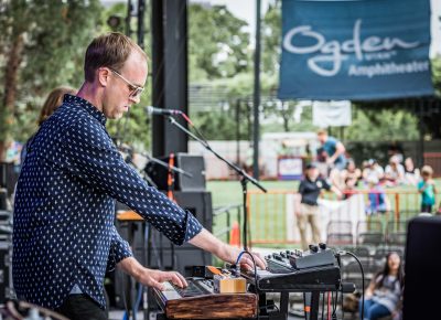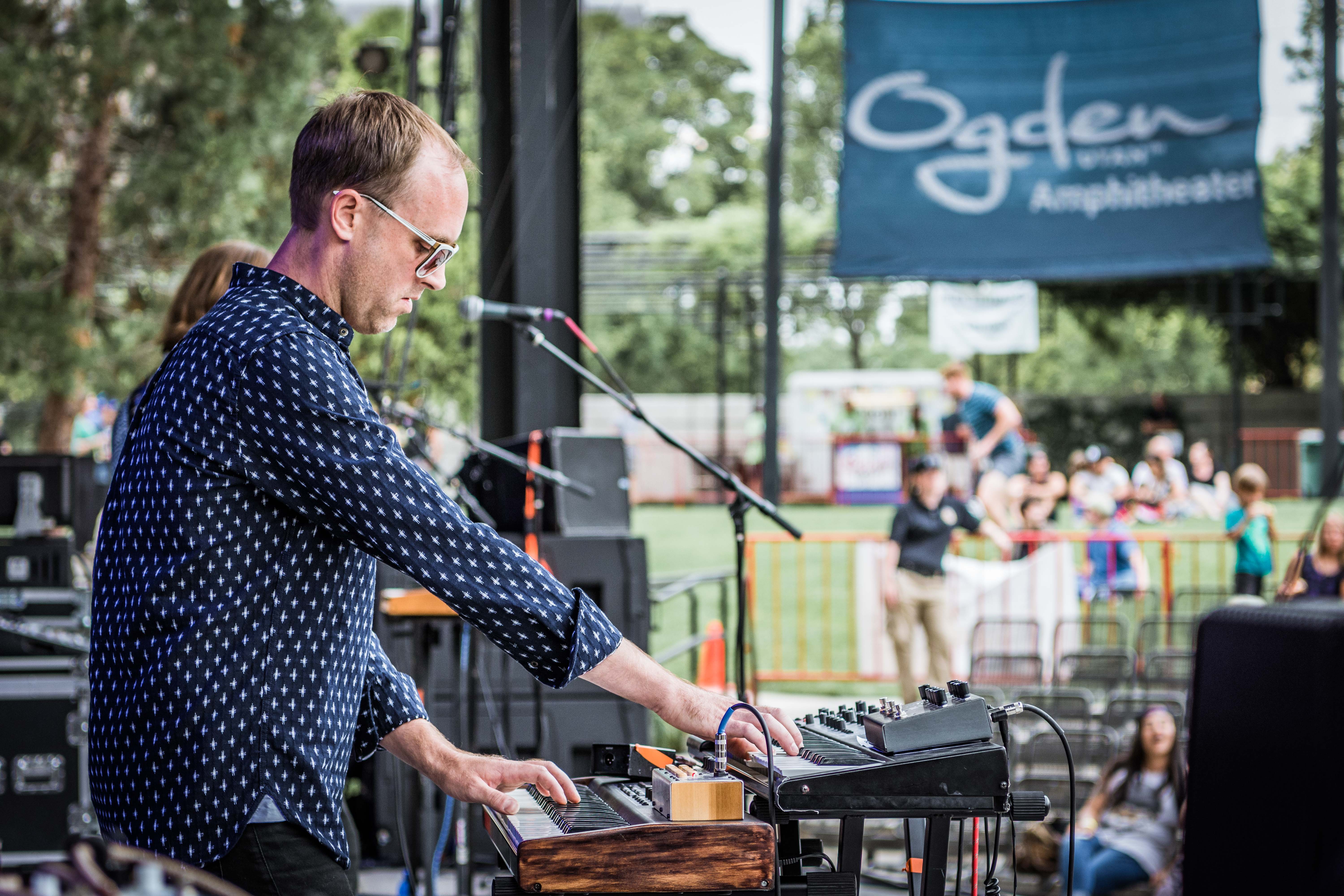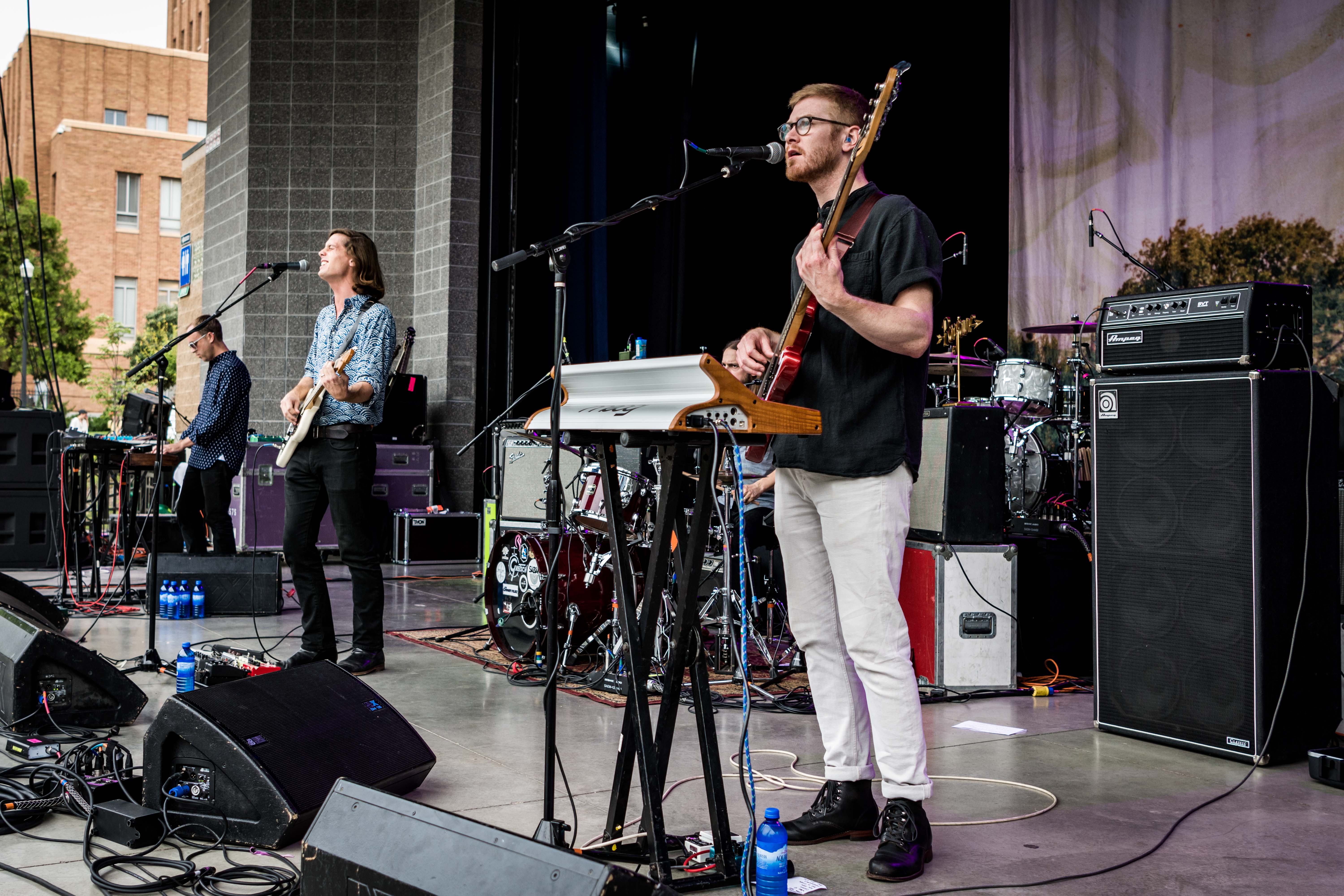 Local legend Joshua James started the evening off right. Music lovers sat on the green grass, hanging with friends and family. RYE SLC brought their delicious mac and cheese and Graywhale Entertainment was selling some awesome merch for all of the bands. In Tall Buildings is a band hailing from Chicago, Illinois. Celebrating the release of Akinetic, the band has been touring with Broken Social Scene over the last few dates. The sky darkened, but the air remained hot as a storm began to set in.