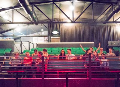 Early arrivals hang out in the church pews in the stage area, by the bar or outside on the patio. Photo: JoSavagePhotography.com