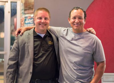 Austin Decker, a State Room employee, and Lucio Huizar hang out in front of the venue prior to the show. Photo: JoSavagePhotography.com