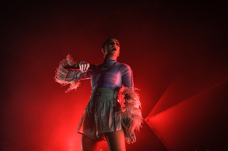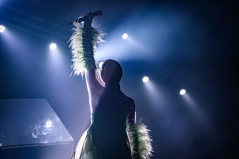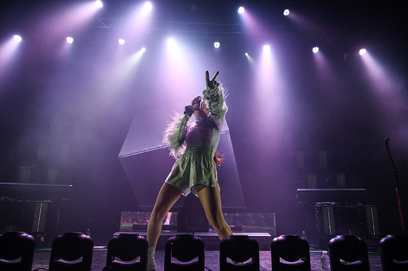 It was a mellow, chilly Monday night as the fall season began to take a hold over Salt Lake City and Charli XCX graced the stage at The Complex. As I entered the venue, people were just about overflowing out of the small side of the venue where the concert was being held. Fans were already watching the opening act, Dorian Electra, work the stage. Electra had a very energetic set with lots of dancing and great stage production. I wandered upstairs to the 21+ bar to get a different vantage point and it was nearly empty save a few concertgoers enjoying some tasty adult beverages. After Dorian Electra’s last song, they mentioned a meet-and-greet at the merch booth with the band. The crowd roared with excitement.