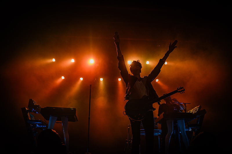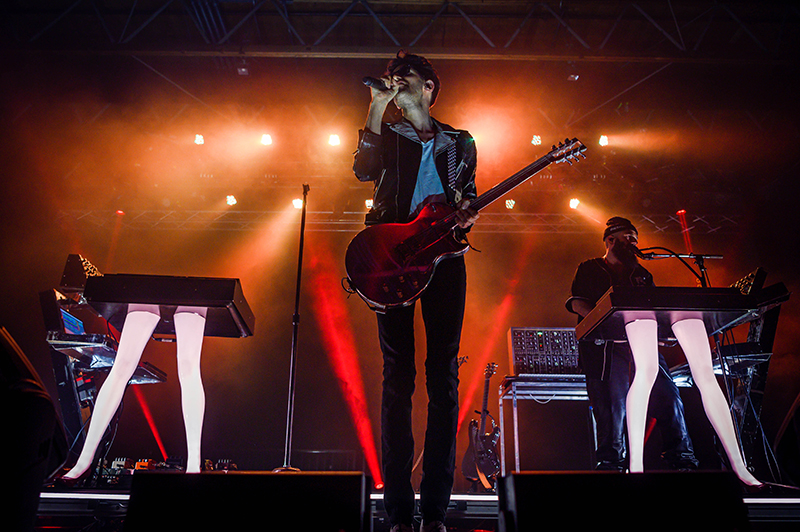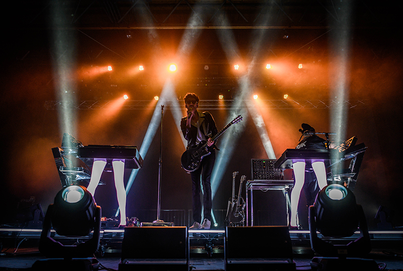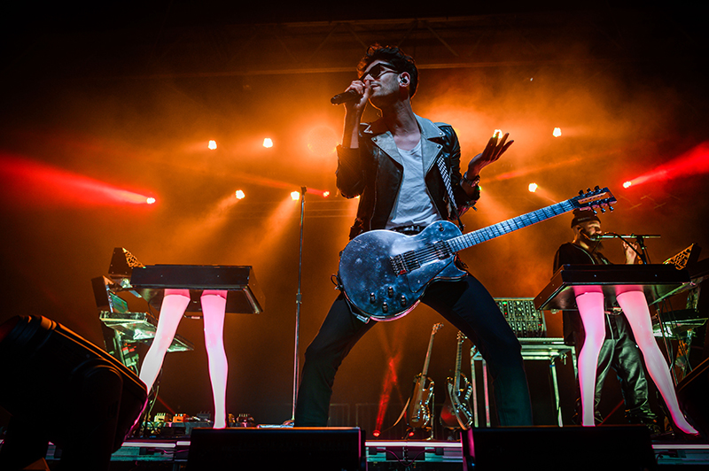 Chromeo, headlining this Salt City Sounds extravaganza, is an electro-funk group. A Utah favorite, Chromeo has visited SLC before and draws bigger crowds each time. Rocking an “A Christmas Story” leg-lamp-like keyboard and a “Grease Lightning” leather jacket, David “Dave 1” Macklovitch and Patrick “P-Thugg” Gemayel rocked the night away once again. Having formed in 2002, the duo has played together going on seventeen years and are always give a rocking time for all.