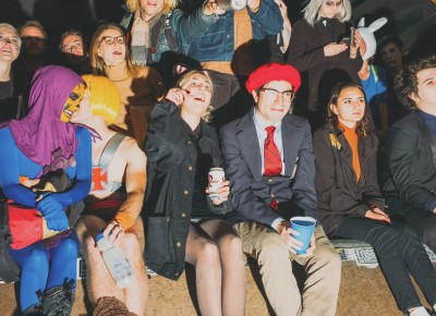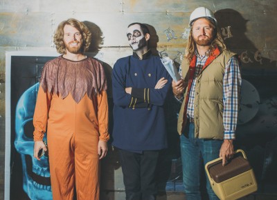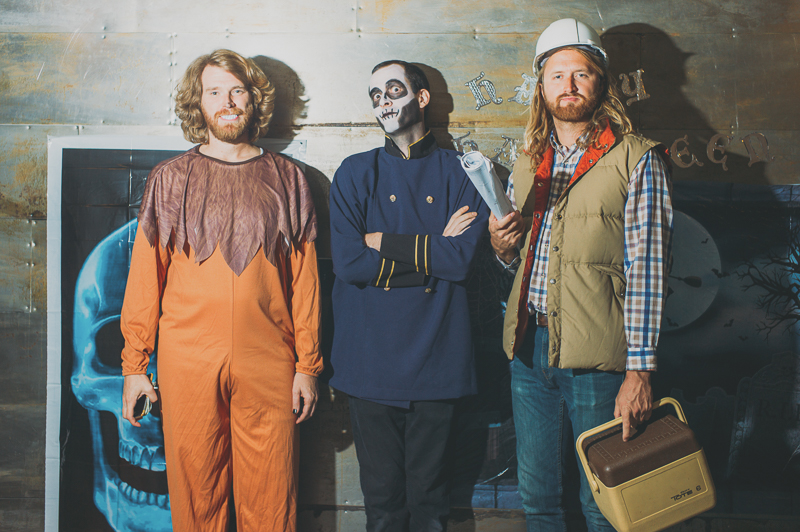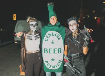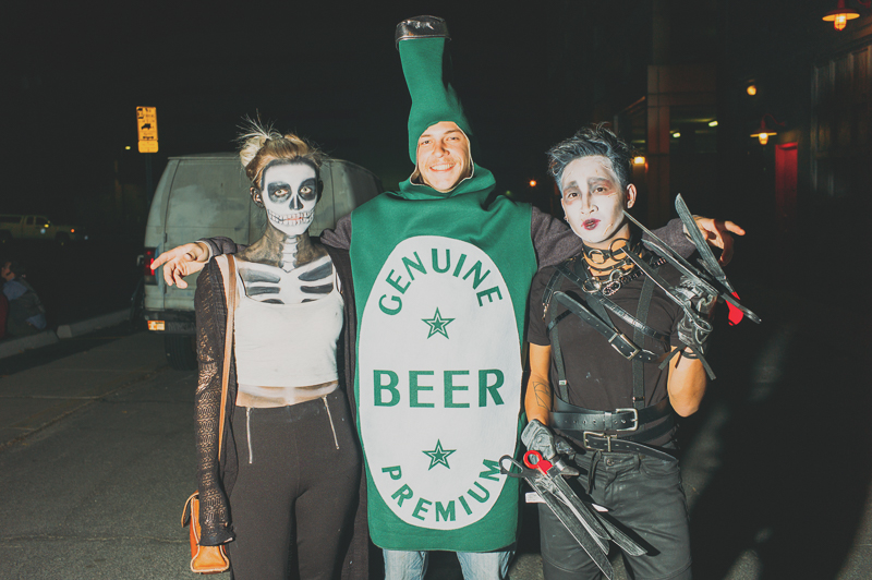 (L–R) Rainen Snyder as a skeleton, Julian Mitkus as a beer bottle and Trung Tham as Edward Scissorhands. Photo: Tyson Call @clancycoop