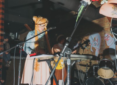 Katrina Ricks Peterson of Baby Ghosts playing Gerard Way of My Chemical Romance playing a cover of MCR’s cover of Queen’s song, “Under Pressure” (phew!) Photo: Tyson Call @clancycoop