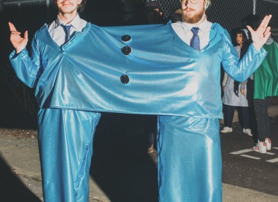 (L–R) Alex and Ty as the zoo suit from Wet Hot American Summer. Photo: Tyson Call @clancycoop