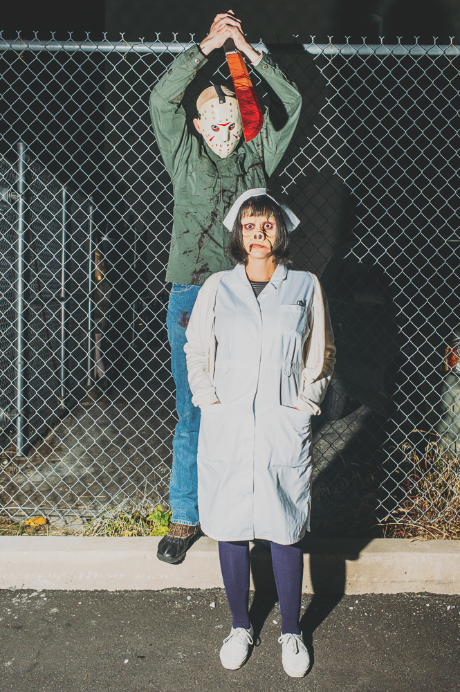 (L–R) David Ohlson as Jason Voorhies and Donna Baluchi as the Pig-Faced Nurse from Twilight Zone. Photo: Tyson Call @clancycoop