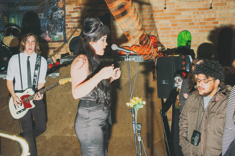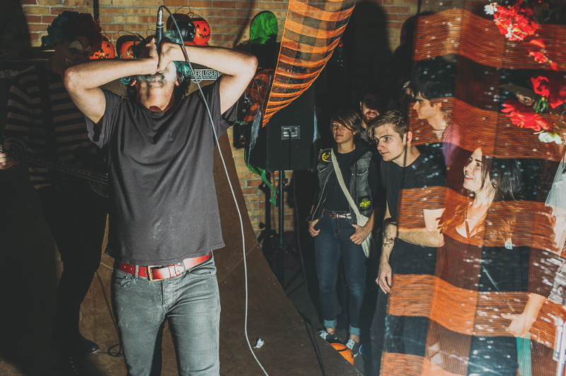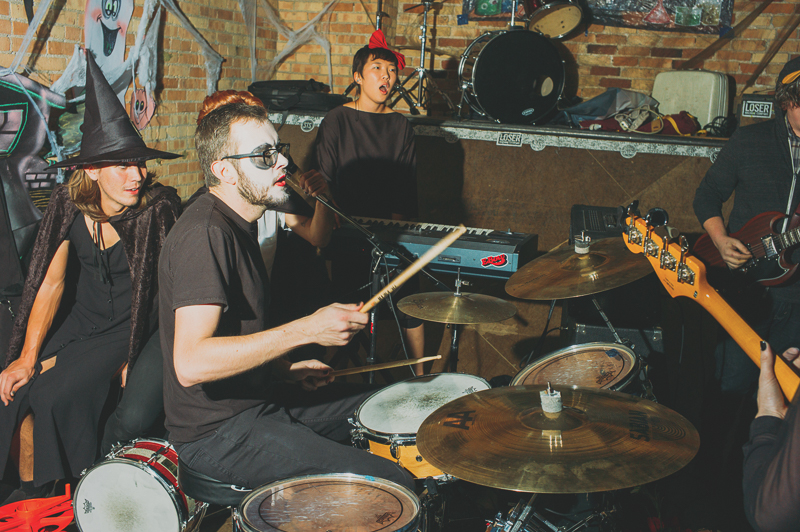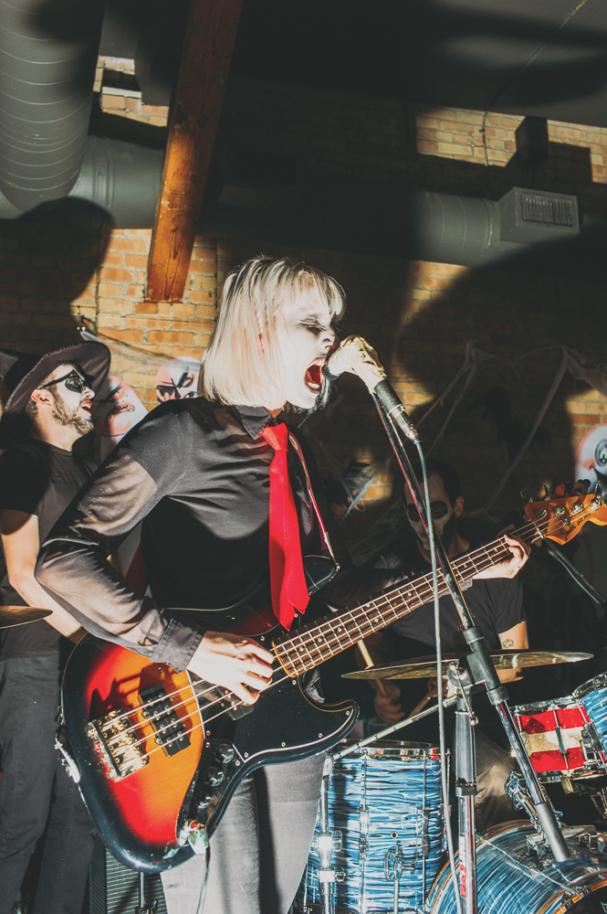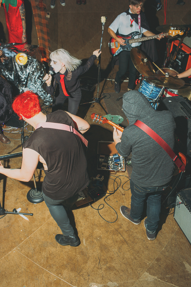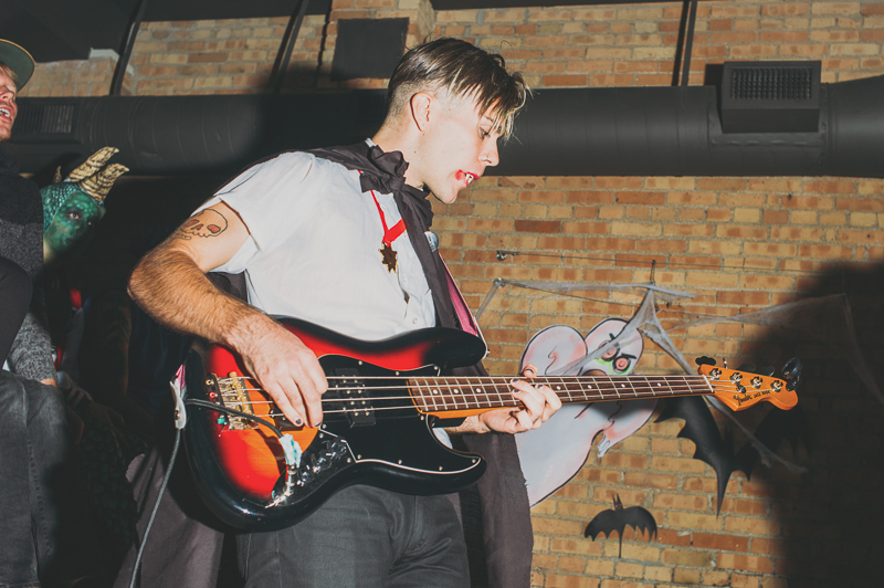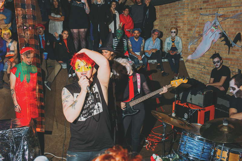 Punk Rock Halloween is annual event wherein bands dress up as their favorite artists and play their songs like they are the artists themselves. This year attendees had a chance to hear The Go-Go’s (Foster Body), New Order (Fossil Arms), Husker Dü (Chalk), Rage Against the Machine (Wild Moth), My Chemical Romance (Baby Ghosts) and Amy Winehouse (Show Me Island). Most attendees came in costume, some elaborate and silly, some stark and scary.