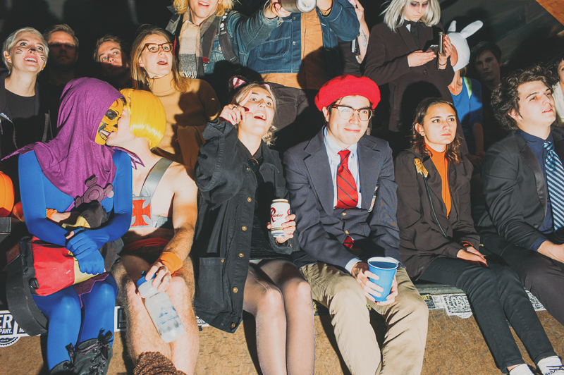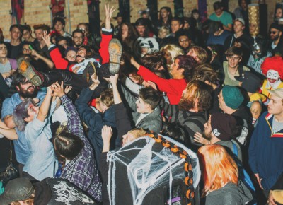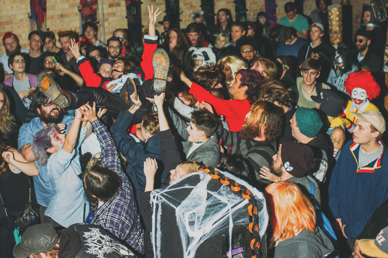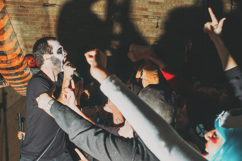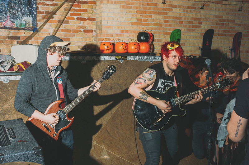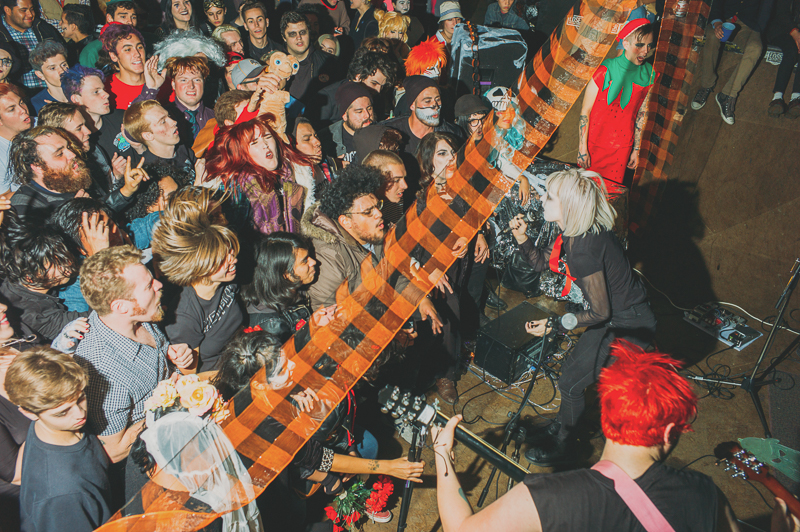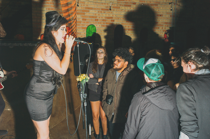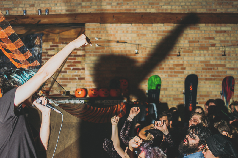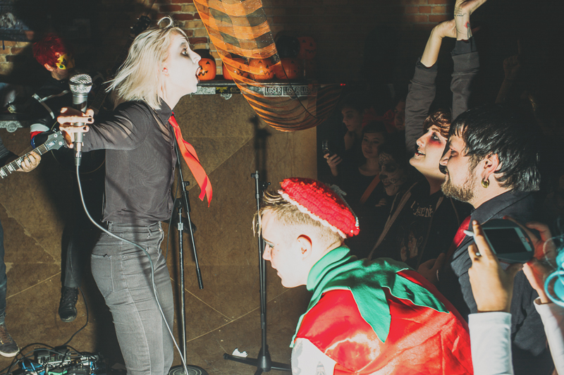 Punk Rock Halloween is annual event wherein bands dress up as their favorite artists and play their songs like they are the artists themselves. This year attendees had a chance to hear The Go-Go’s (Foster Body), New Order (Fossil Arms), Husker Dü (Chalk), Rage Against the Machine (Wild Moth), My Chemical Romance (Baby Ghosts) and Amy Winehouse (Show Me Island). Most attendees came in costume, some elaborate and silly, some stark and scary.