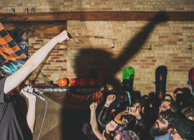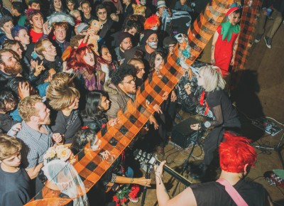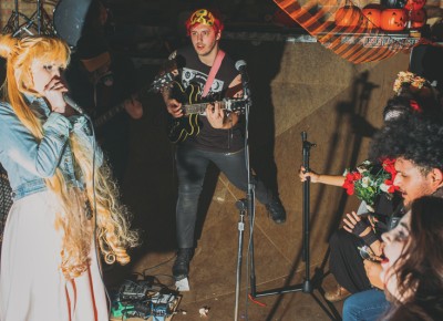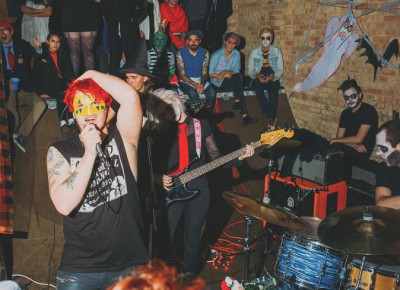 Wild Moth started their set as Rage Against the Machine with a recorded speech of vocalist Zach de la Rocha speaking to a crowd at one of their shows, after which they blasted into “Killing in the Name” which turned the crowd to a frothing mass, nearly everyone singing along. Baby Ghosts started their set as My Chemical Romance with “I’m Not Okay” which had everyone remembering their 2004-era angst, as well as every lyric. Every song was energetic and well-performed, with band members switching instruments each song. Show Me Island brought a different mood, with the smooth bluesy sound of Amy Winehouse, backed by brass. Punk Rock Halloween was a huge success, with countless interesting things to see and hear.