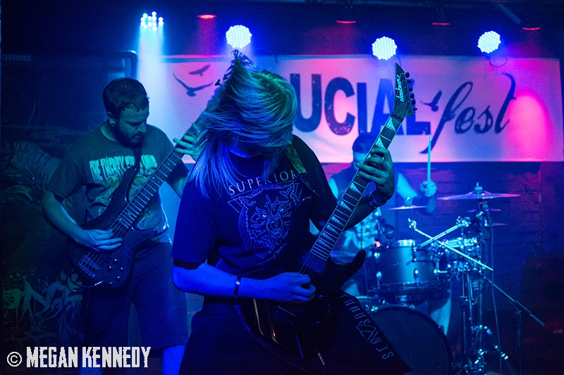 Perfect lineup, decent sound and tons of energy made day two of CrucialFest 5 a blast. Odium Totus left the crowd surrounding the 21+ stage of Area 51 in ruins after their extreme set. Lupericus’ antics as he pounded bass frequencies out of his instrument intrigued the crowd as Aemilius laid them to waste with his intricate drum patterns. Oxcross increased the momentum with Taylor Williams’ intense performance of jumping around and screaming like a mad man. Demon Lung of Las Vegas, NV took the sound in a new direction with their psychedelic twist on doom metal. Vocalist Shanda Fredrick’s violent red hair radiated a witchy feel as her white dress glowed beneath the stage lights. Following was California’s Castle as the three-piece unleashed their unbelievably high energy on the audience. Liz Blackwell and Mat Davis hardly stood still as they thrashed around the stage with stand-in drummer Stavinski’s thunder providing a solid platform of destruction. The Ditch And The Delta cracked jokes throughout their set and despite some technical trouble with an instrument cable, they closed the show with a bang. Although the emcee introduced five of the six bands incorrectly, the atmosphere was electric.