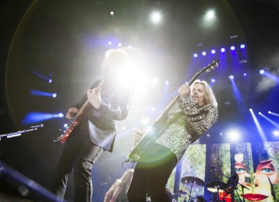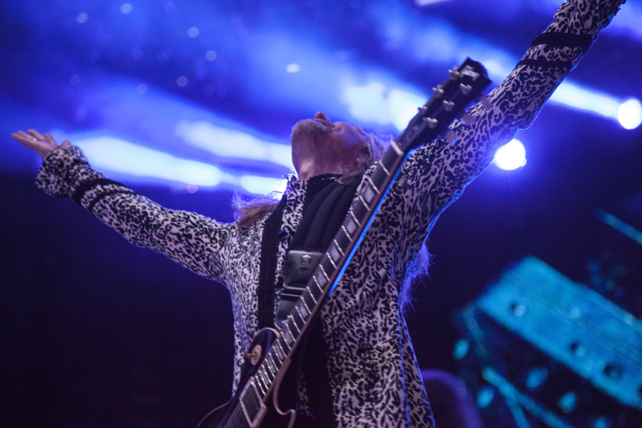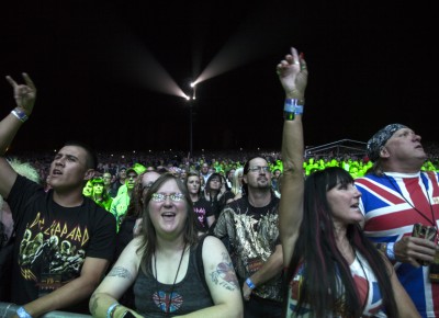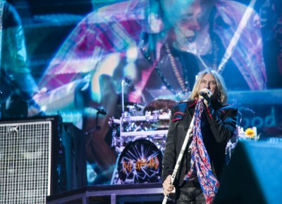 On the eve of Sept. 28th, 2015, hundreds of fans lined up to watch rock legends Def Leppard, Styx and Tesla perform at the USANA Amphitheater. There were fans of all ages, and even fans dressed in costume. The show started of with an energetic performance by Tesla, with lead singer Jeff Keith interacting with the crowd and getting everyone excited. They played classic hits such as “Modern Day Cowboy” and “EZ Come EZ Go”.The band was very active and they were all interacting with each other and the crowd and made a great start to the show. After Tesla’s set, patrons got to enjoy a beautiful sunset while they waited for the next band to set up.