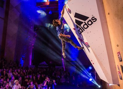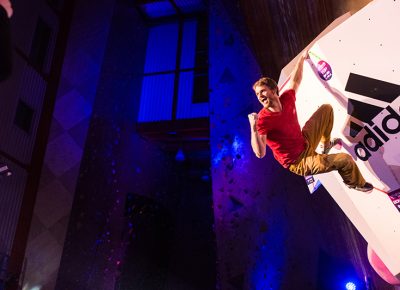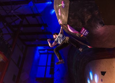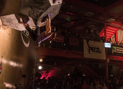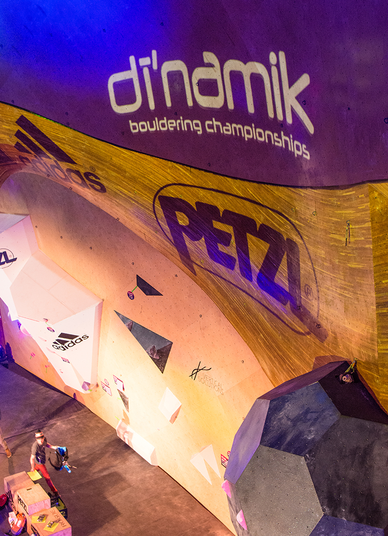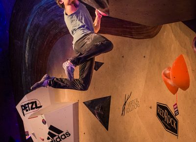 Each year during Outdoor Retailers, Salt Lake City’s biggest convention, The Front Climbing Club hosts the bouldering competition Di’namik. This type of competition consists of short and powerful 20- to 25-foot climbing problems. After four previous years of experience, the fifth annual competition drew large crowds from the Utah climbing community, especially in the newly remodeled gym with its 35,000 open square feet of walls. A major appeal for this competition is its open-citizens format, where anybody and everybody could compete alongside some of the world’s best climbers.