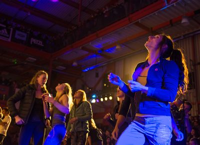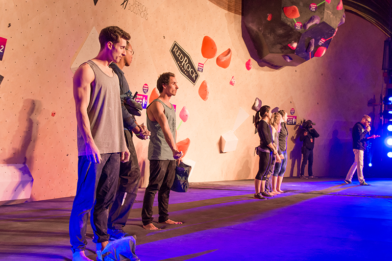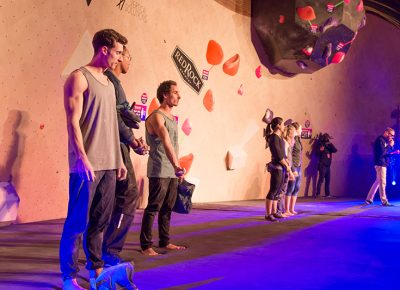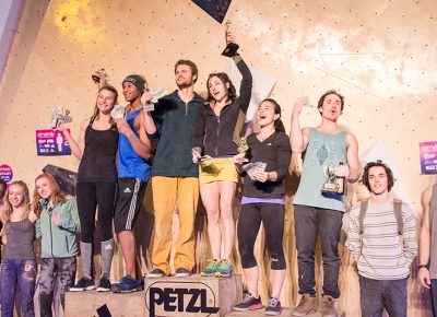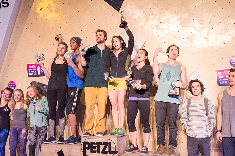 After the final round, there was a pause before they announced the winners to raffle the wonderful gifts provided by sponsors like Petzl and Adidas. The podiums were set in place as the victors were announced to the waiting crowd. In the women’s competition, Alex Puccio, one of the best climbers in the world, took the trophy for first, while Matt Fultz, a previous Psicobloc winner, took the men’s victory, each taking home $2,000. As people funneled out of the building, next year’s Di’namik bouldering competition was already on everybody’s minds as they anticipated the bigger and better climbers in this ever-growing community.