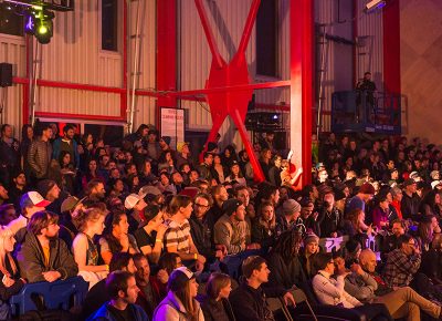 The Front was packed full of climbing fanatics waiting for the finals to begin. Photo: ColtonMarsalaPhotography.com