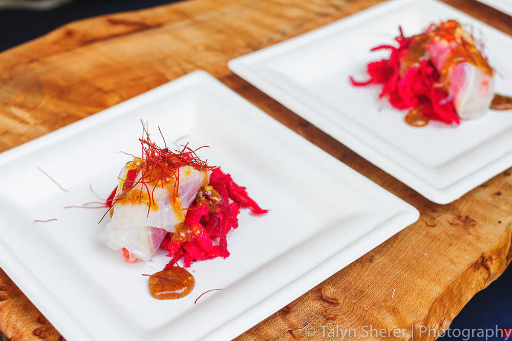 As I moved deeper into the aviary, pausing every so often to observe a flamboyance of flamingos or parliament of owls, I came to an impressively arranged table operated by The Blended Table. It’s a catering service frequently booked by organizations like the Utah Museum of Fine Art and Red Butte Garden, and they had packed a lot of gastronomic firepower into their small setup. They started with a crisp and refreshing Watermelon Radish Spring Roll that was accompanied by a Peanut Plum Dipping sauce, and finished with a beautifully cooked medallion of Beef Tenderloin topped with Horseradish Cream. Spring rolls and tenderloin aren’t traditionally bedfellows, but who cares? The tenderloin was juicy, and the crunchy cool spring roll was perfect for a summer night.