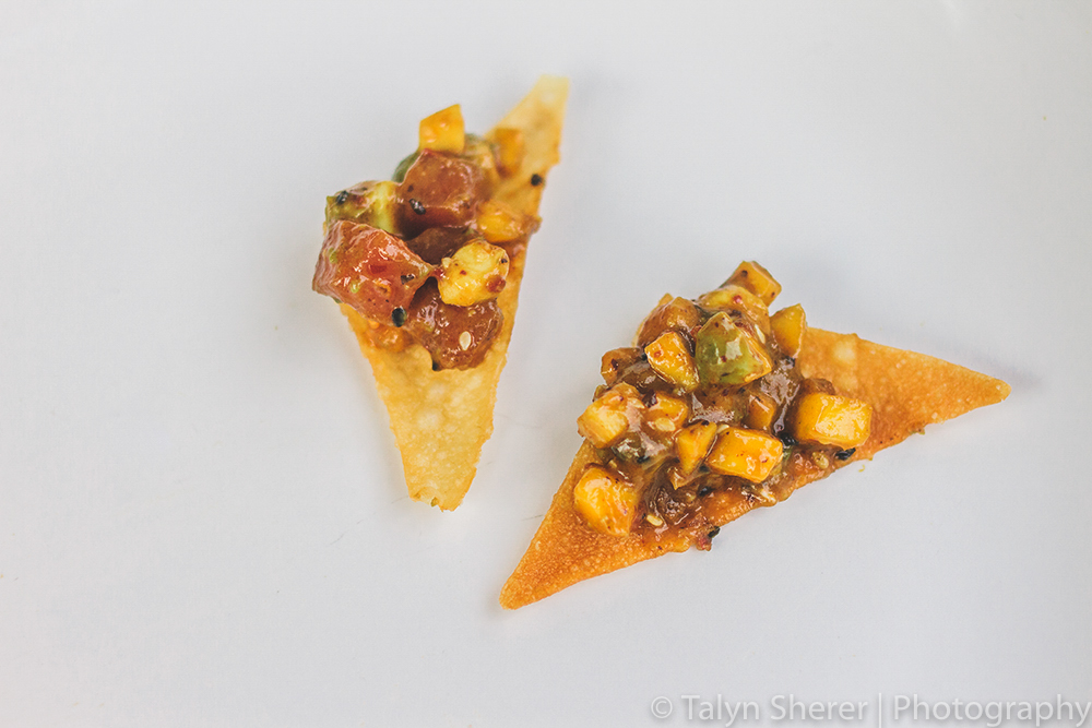 The sun was starting to set, which knocked the thermostat down a few notches. It was still a searing 98 degrees, but I was happy to take what I could get. I was also happy to see Cucina’s crispy won tons topped with tuna poke mixed with Guajillo chile, mango and avocado lined up like military troops for inspection. This was another bite that swept me away to a more tropical climate, making me almost appreciate the heat for providing the right contrast to that deliciously smooth poke mixture.