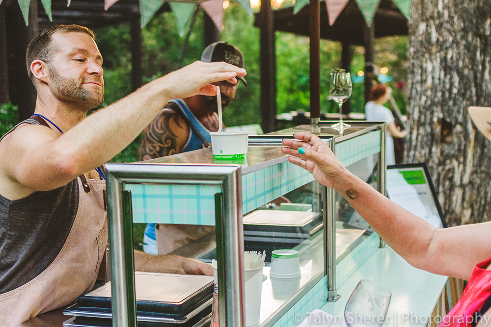 Ice cream was a no-brainer for dessert, and the two finest vendors of said frozen treat were Amour Café and PJK’s Creamery. Amour was doling out fluffy spheres of Manhattan Stracciatella Gelato topped with a Cocktail Mix Cookie. Chef Amber Billingsley knows how to make gelato sing, and the sweet and salty cookie was an excellent gelato delivery system. The ripped dudes at PJK’s had four tasty flavors of their famous, home-churned ice cream ready to cool off the evening’s toasty attendees. I went for Buttered Popcorn Ice Cream and then I went back for Strawberry Balsamic Gelato. The Buttered Popcorn was a creamy, slightly salted wonder, and the Strawberry Balsamic had a lovely tartness paired well with the balsamic vinegar.