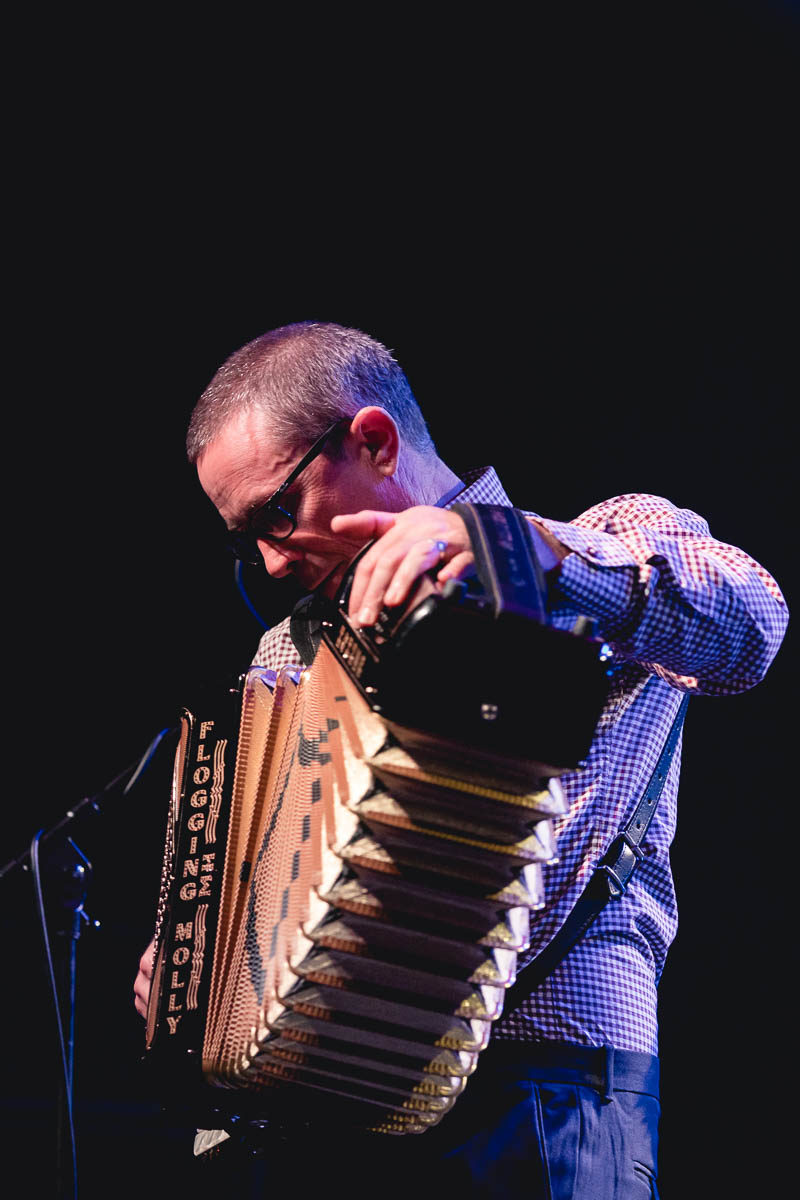 Dave King swaggered onto the stage with a beer in his hand. He raised it to the audience as they responded with cheering and raised fists. He, along with the six subsequent members of Flogging Molly, found their spot onstage and picked up their instruments. King introduced himself, though he needed no introduction, and encouraged everyone to clap in unison while he belted out the opening lyrics to their brand new track “The Hand of John L. Sullivan.” Over the gradually increasing beat of Mike Alonzo’s bass drum, the lyrics went, “I am the man with the plan to shake the hand of John L. Sullivan / Fighter till the end, legend he will be / and if any man should ask, if any man could carry / I am the man with the plan to shake the hand of John L. Sullivan!” and without a moment’s hesitation, the dance floor opened up to some of the most fun and rowdy mosh pits one could ever hope to be a part of.