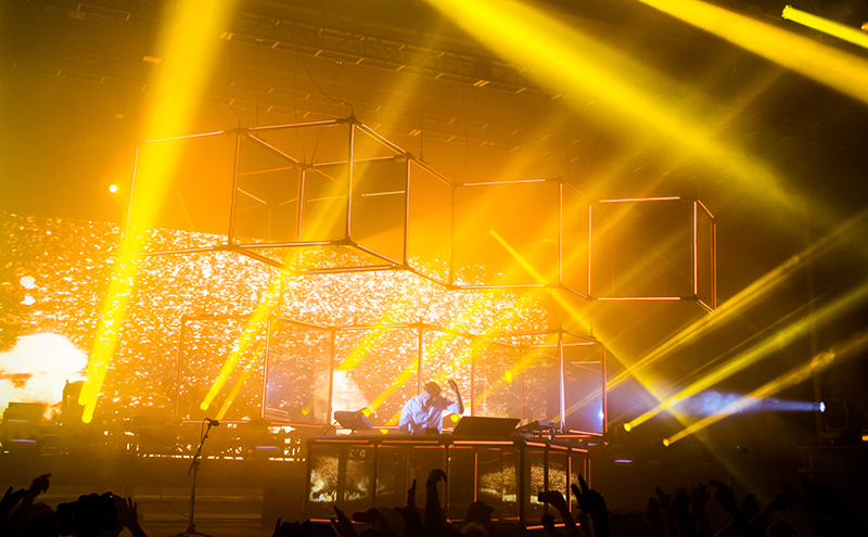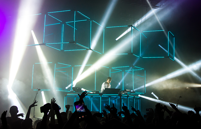Twenty-four year-old Harley Streten, most commonly known as Flume, made his first appearance in the Beehive State on Tuesday night at The Complex in Salt Lake City. Flume is known for his high-energy atmospheric dance music, inspired by house and U.K. garage–styled beats. His debut self-titled album features tracks such as “Sleepless ( feat. Jezzabell Doran),” “Holdin’ On” and “Left Alone (feat. Chet Faker),” offering a first look into his unique style as a musician and producer. Having peaked at the top of the Australian ARIA Albums Chart in 2012, Flume’s popularity has continued to grow, and he has become a familiar face, playing at bigger venues and festivals. Recently, Flume has worked with well-known artists such as Disclosure, Arcade Fire and Lorde. Those at The Complex got a taste of Flume’s new stage design, a cubical version of his previous infinity prism design, on Aug. 16, creating a vibrant show to remember.