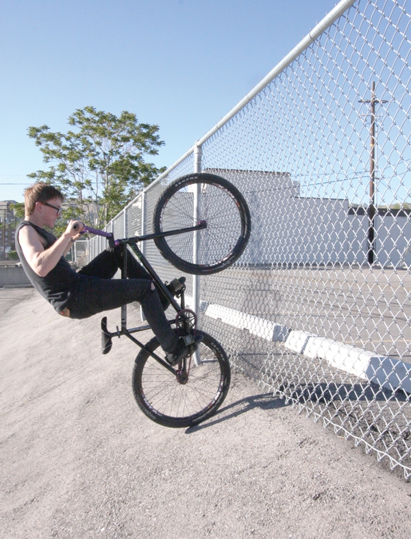 Allgood: I originally rode a fixed gear to get around, but I was longboarding up at the U and just loved the campus and riding through and saw people on mountain bikes and figured I could ride my bike down all of that. I just started hopping down stairs or riding through grass.
