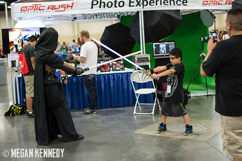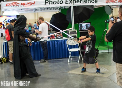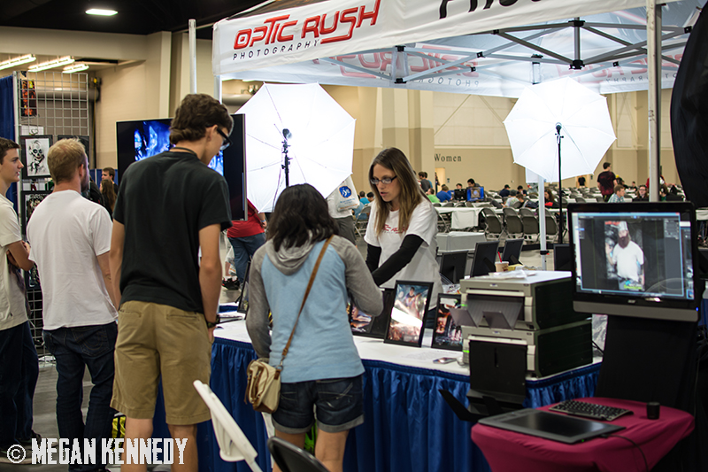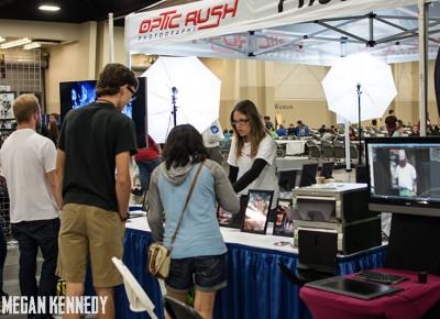Fans check out the Optic Rush Photography booth, which specialized in inserting you into fantastical backgrounds. Copyright Megan Kennedy // abuseofreason.com