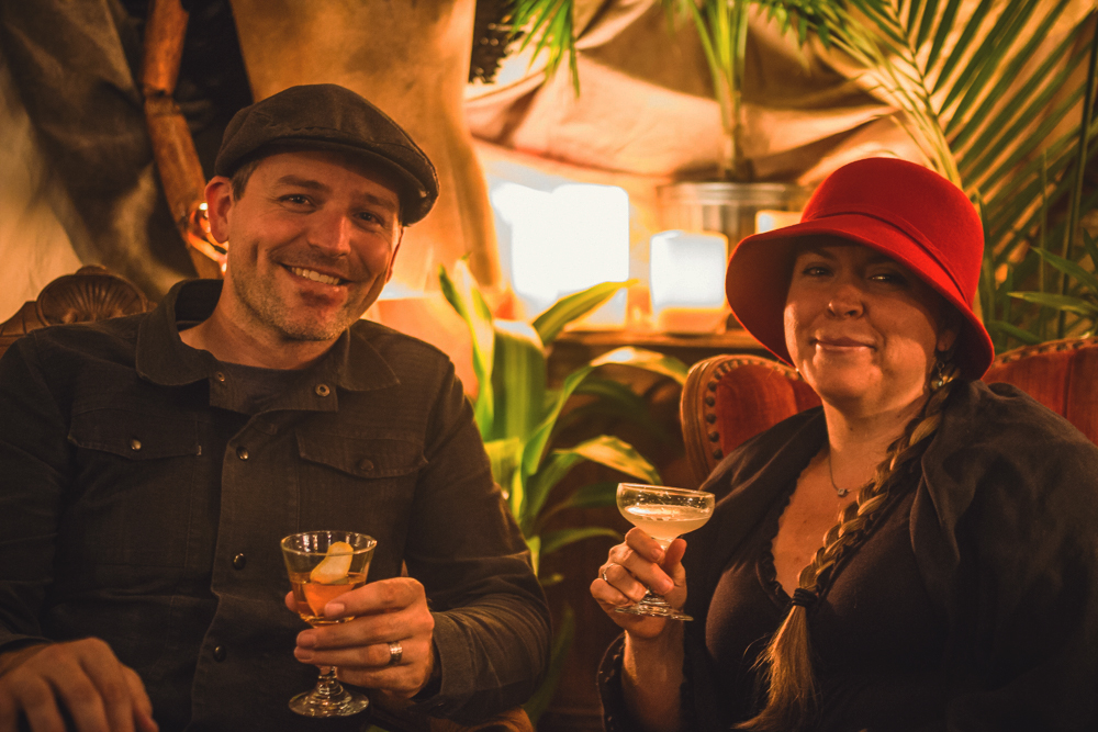 (L–R) April Gaultney smiles for the camera while John Zebra dreams of his next cocktail. Photo: Talyn Sherer