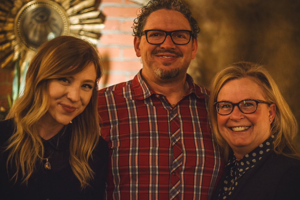 (L–R) Erica New snags a photo with Sara Lund’s parents, Mike and Cheryl Burns. Photo: Talyn Sherer