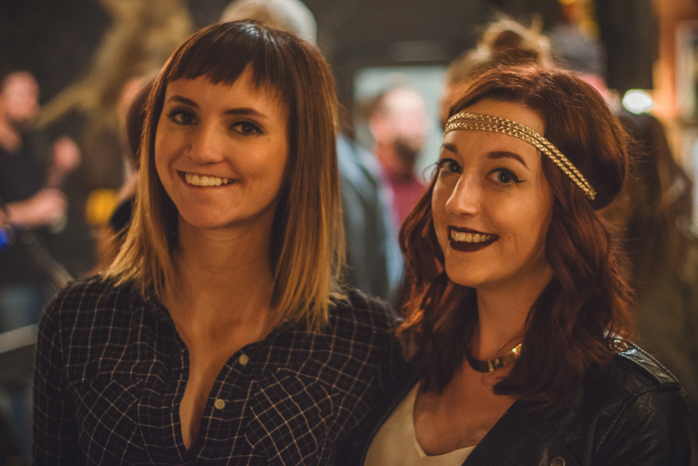 (L–R) Sara Day and Allison Shepard eagerly wait in line for their chance to sample a cocktail from the bar. Photo: Talyn Sherer
