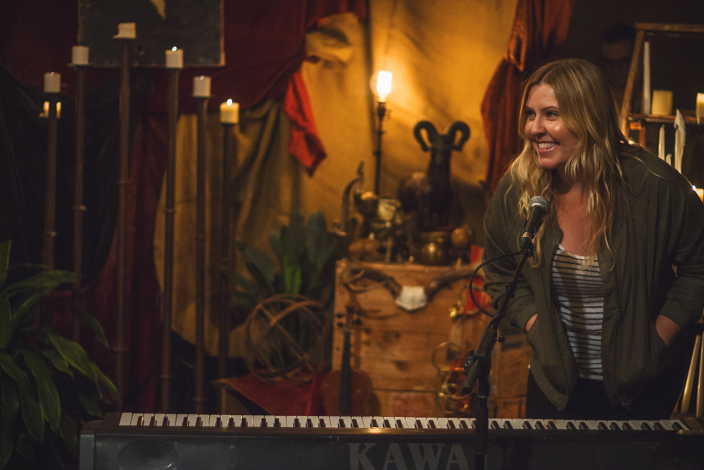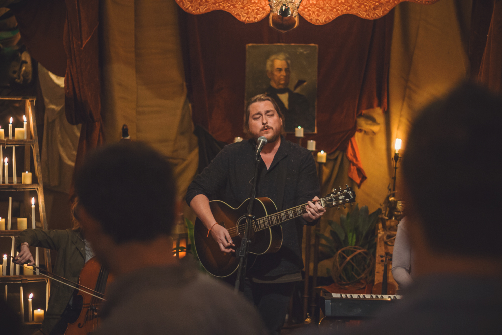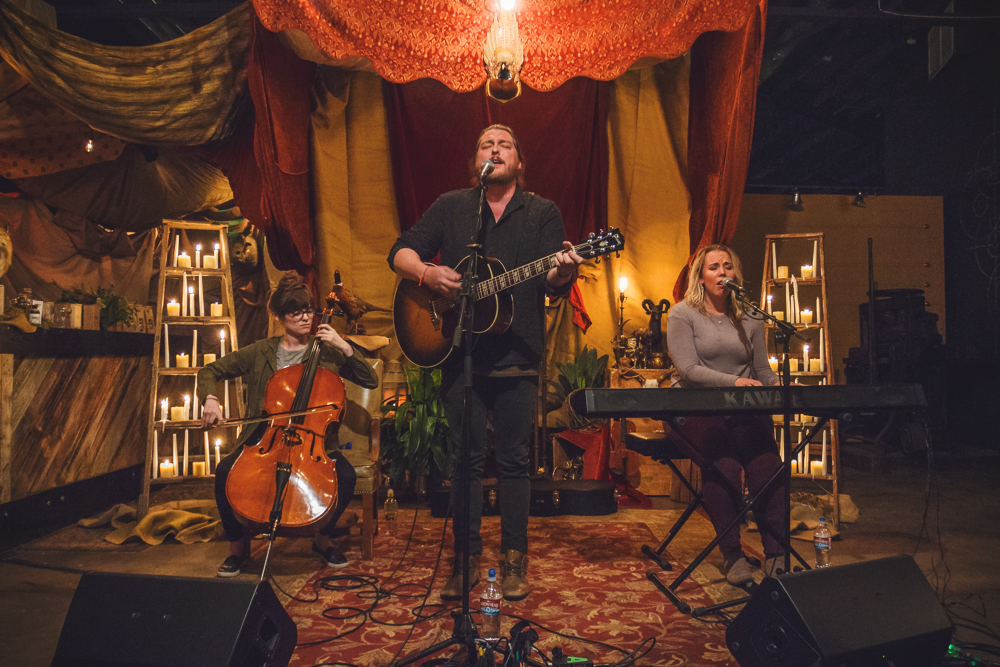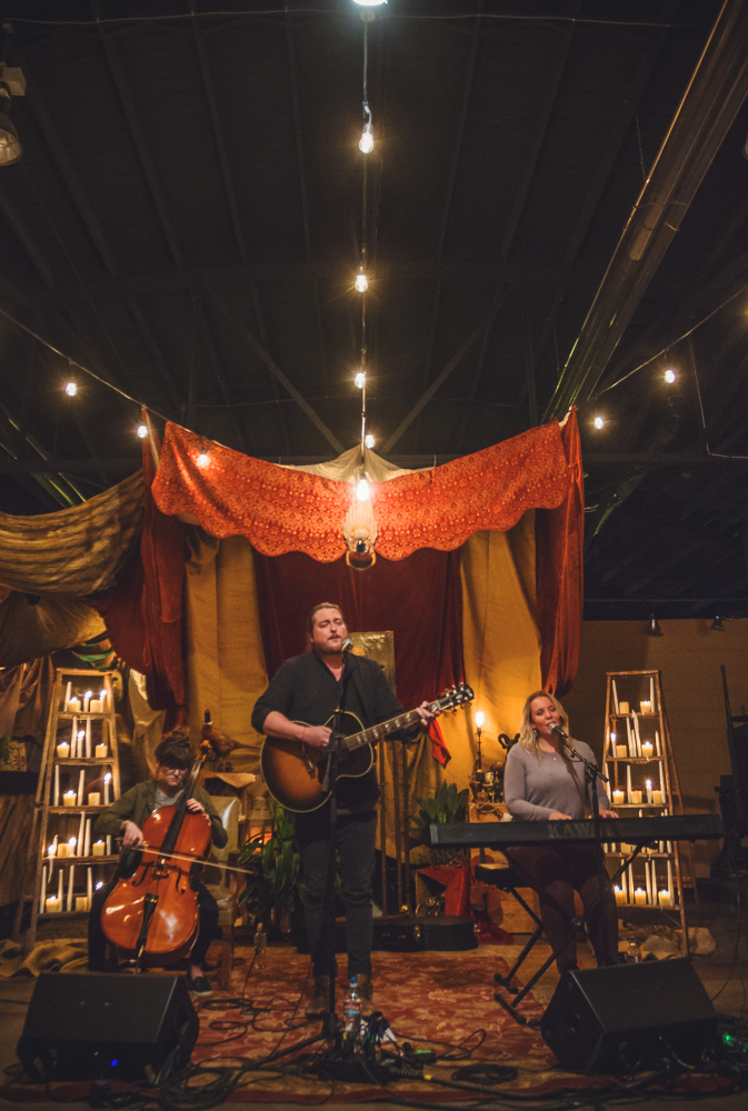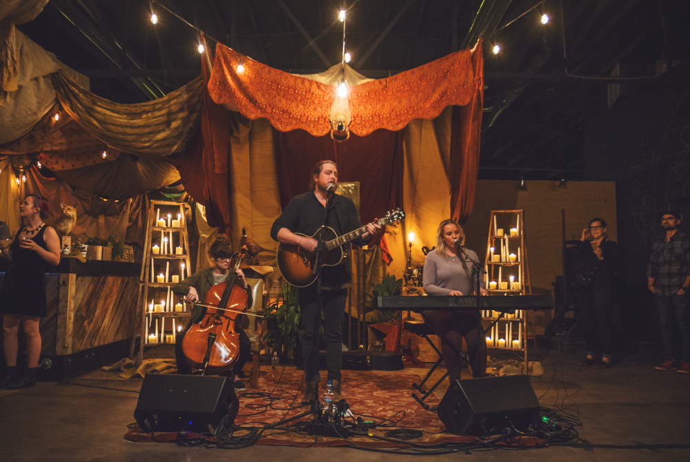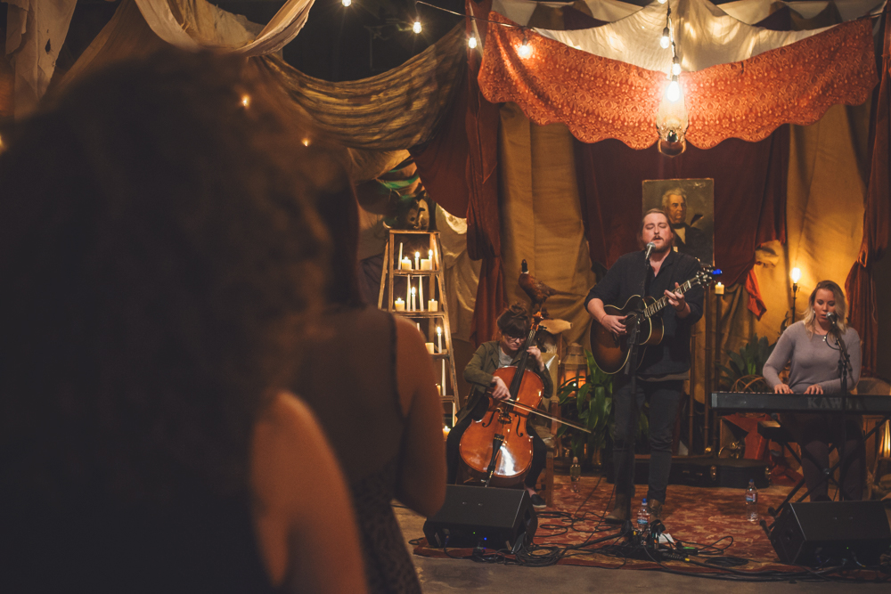 Book on Tapeworm perform under the Edison-bulb string lights and the intense focus of the crowd. Photo: Talyn Sherer