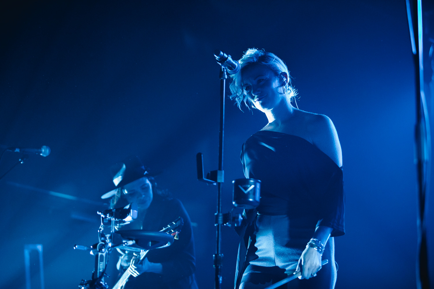 Back up vocal support for Hozier, playing in the blue backlight on the stage at the Union Event Center. Photo: @Lmsorenson