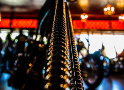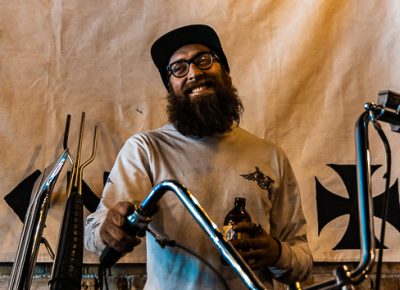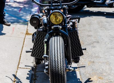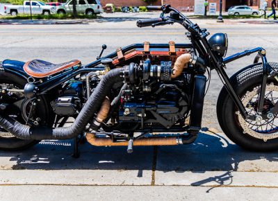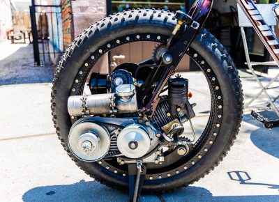 What happens when you combine beers, bikes and shenanigans? One might say pure bliss. What’s pure bliss look like, you ask? Look no further than the Junction City Chopper Show, held up in O-Town at the oh so illustrious Yes Hell bar off 24th Ave and Grant. It featured live music, vendors, street tacos, cheap drinks and—you guessed it—super rad custom choppers. Bike builders, enthusiasts, craftsmen and local connoisseurs of fine fire water gathered for what turned out to be an absolutely amazing event. The bikes showcased were of top-notch caliber when it comes to style, attention to detail and build quality. Not to mention some of them seemed more like they rolled out of a mad scientist’s lab than a bike shop: Front forks made from old mining drill bits, a turbocharged diesel engine slammed into a tiny little frame and combustion engines slapped onto downhill mountain bikes just for the sake of being able to say you did it. It was all there, and not a single bike showcased failed to impress.