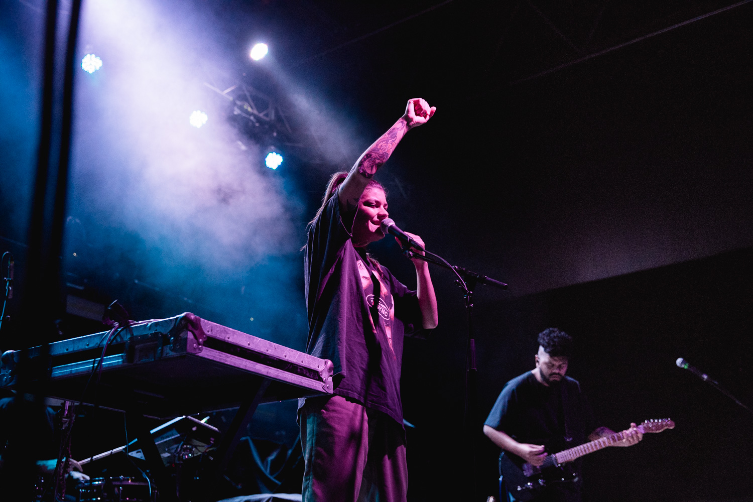 During the set break, concertgoers eagerly await the headliner. People grab some shirts, a drink or maybe a churro at the snack stand. And before anyone knows it, it’s time for K.Flay to take the stage, arriving to a barrage of cheers and applause before starting up with fan-favorite tracks. The crowd, getting warm and cozy, sways as one with fists in the air. A vibe of yearning, excitement and energy felt through the set. K.Flay plays a mix of slower, electronic, hits as well as more hip-hop-influenced tracks such as “No Duh” and “So Fast, So Maybe” off the self-titled album.