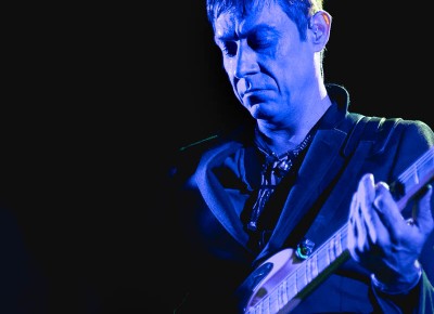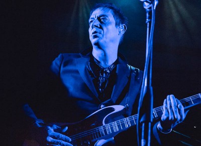 Guitarist Jamie Hince is bathed in blue stage lighting for a moody start to the set. Photo: Lmorenson.net