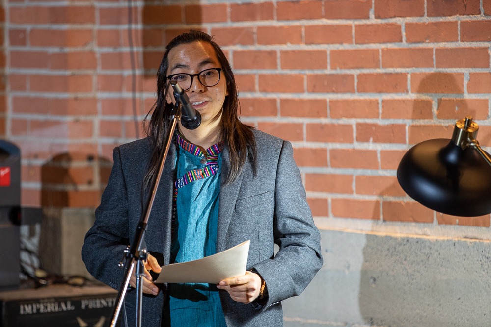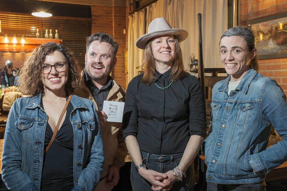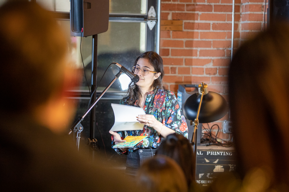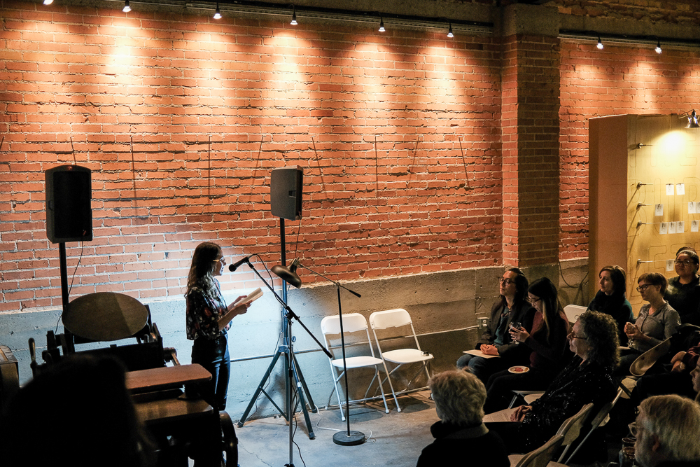 The softly-lit location of the launch party, Mandate Press, is a modern letterpress shop smack-dab in the middle of Salt Lake. The shop created a subtle, arty vibe with its vintage, brick walls, art and well-stocked bar. In one corner, artists and non-profit professionals mingled over drinks and picked at an impressive charcuterie spread. The major Lightscatter volunteer board members dedicated to getting the press off the ground were sprinkled throughout the gathered crowd, explaining their plans to get the city’s newest poetry press up and running.