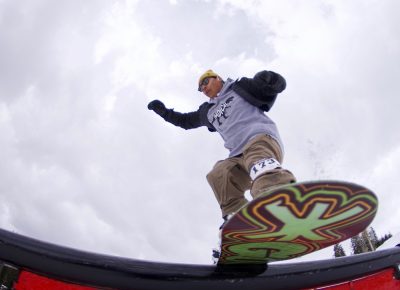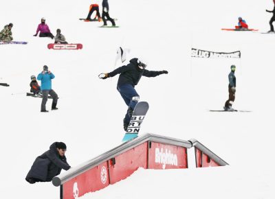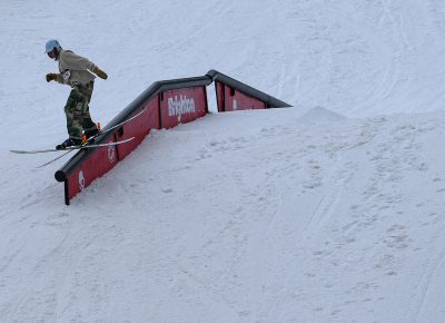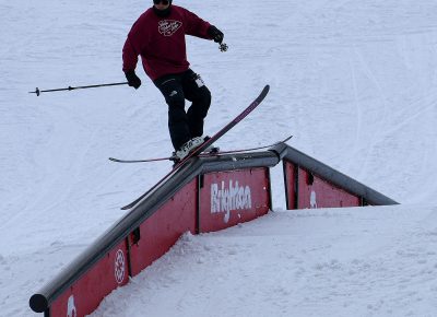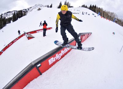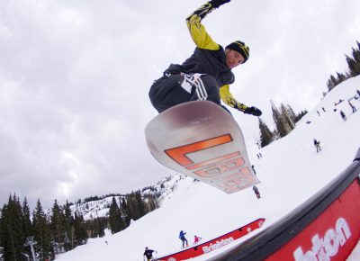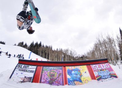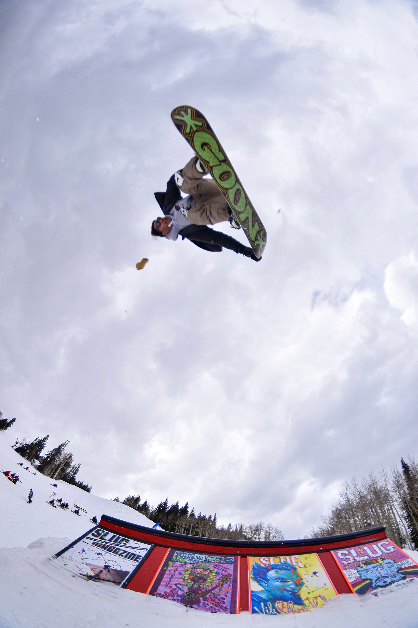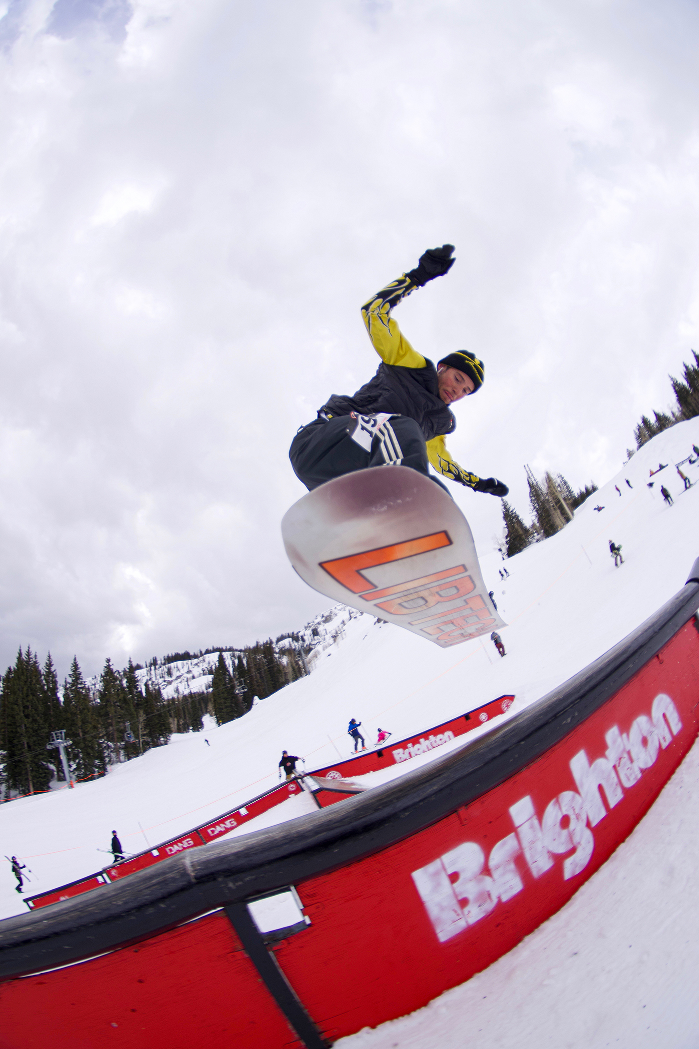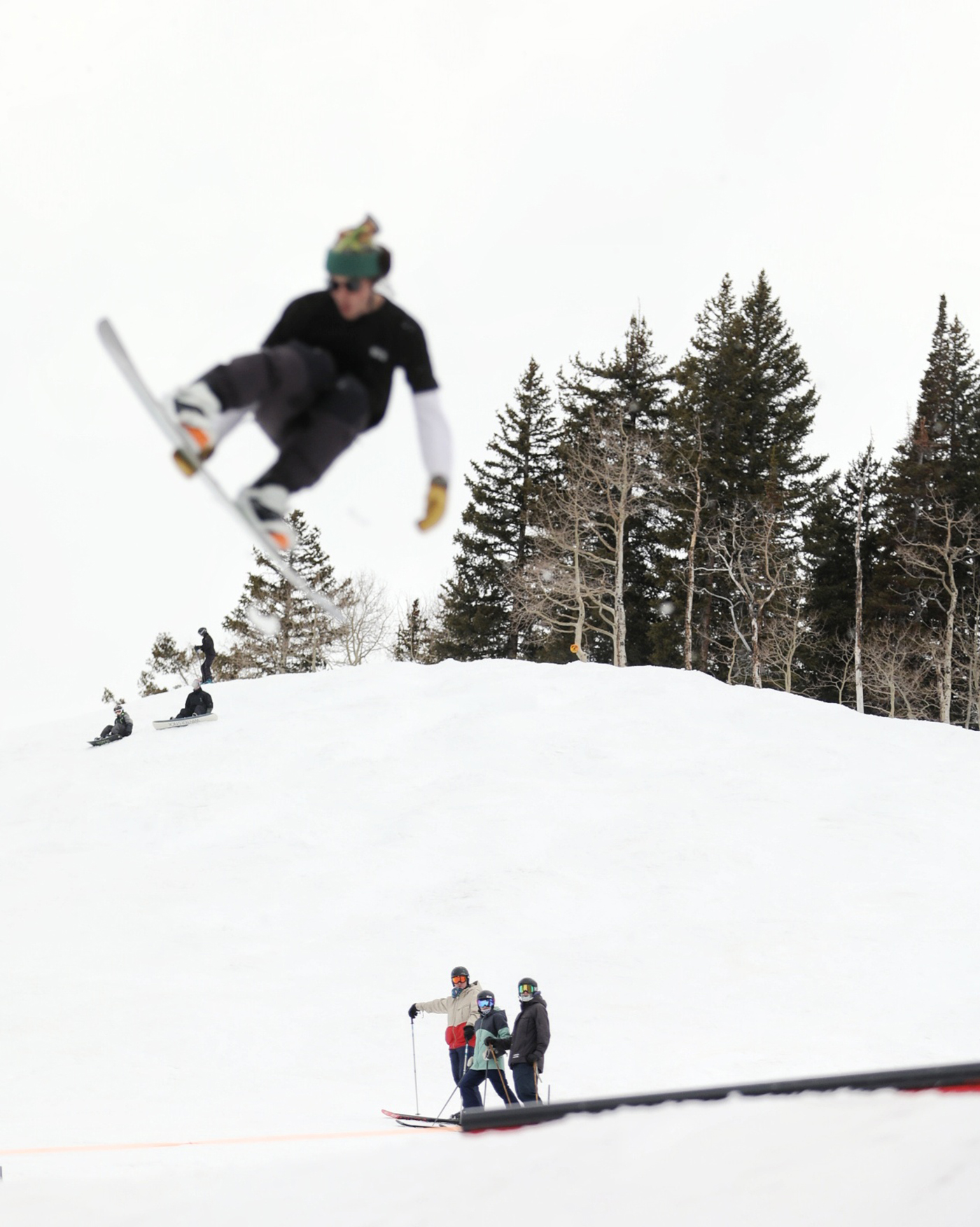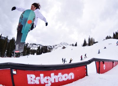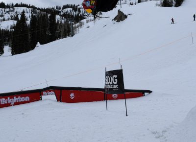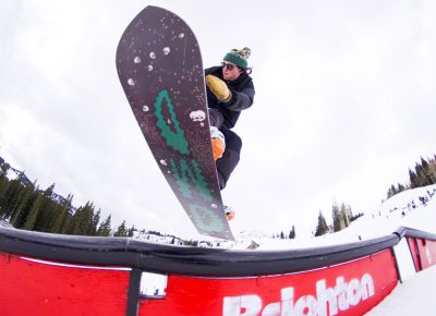 The 20th Annual SLUG Games competition, this being the Meltdown edition, kicked off this past Saturday at Brighton Resort. For 20 years, this contest has been going down, highlighting some of the best and brightest, oldest to youngest and most creative riding and skiing around. The stage was set up by the Brighton Diggers, which included a crucifix-box-to-rail with wooden spines on either side, an unorthodox and large-scale flat-down-flat round bar, and a step-down with a bonk/wallride immediately off the lip. With a variety of features, there was sure to be no shortage of the variety of tricks that would go down.