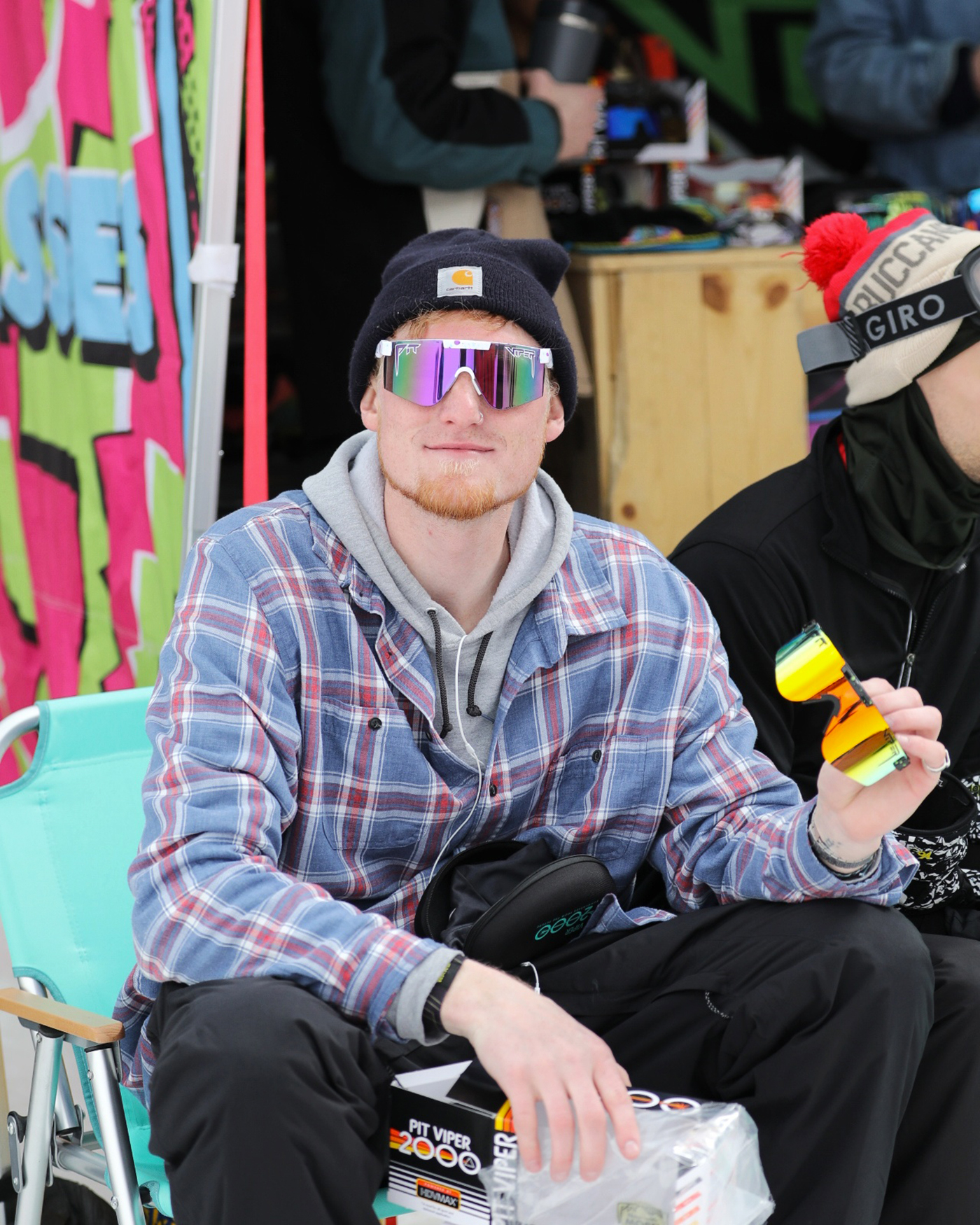 The jump saw a ton of action with a bunch of rodeo-540 variations by the likes of Treyson Allen and Jayden Naylor and a huge, stylish rodeo 720 melon by Jaromie Nolan that would end in a Best Trick award coming his way. Paxon Alexander had a day with technical rail tricks, including a disaster-backside-lip-slide on the big-down and a stylish 720 coming off the jump. Alexander would take home 3rd Place for the snowboarders, and Xander Cornaby and Joey Fava had an absolute grudge match, going trick for trick and putting out sheer production on the down-flat-down and jump. Both were hitting stylish 270 variations and sending over the flat and coming out clean off the down-bar. Cornaby’s creativity and no-foot-caveman ender would land him in 2nd Place while Fava’s consistency and bolts landings of some of the most technical tricks were enough to pull out 1st Place for Men’s Open Snow. Richard Howlard came out swinging, sending a huge front-360 stale fish off the jump, bringing that same energy down on a gap up and over the crucifix, which, unfortunately, nailed his hip and shoulder straight into the ground. After a few moments to collect himself, Ritchie was all good and wished well with a swag bag for Best Crash on the day.