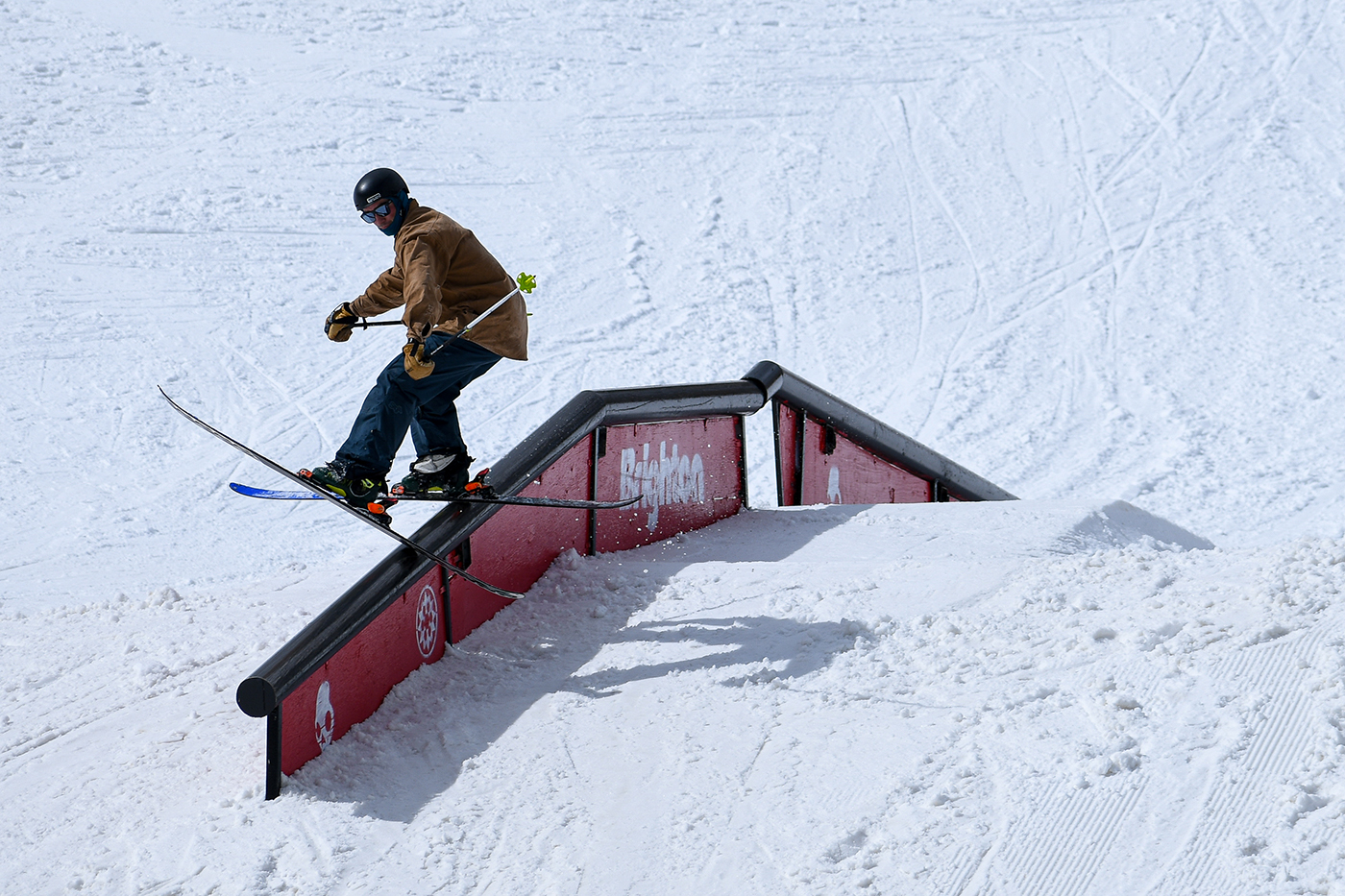 The Men’s and Women’s Open Ski divisions went completely insane with both tricks and bodies flying every which way. Skiers were going huge and technical with more swaps, 270 and 450 variations than I could count. Reid Hendrix stayed in the thick of it, going huge on the jump and styling it out with some rail-tap-pretzel variations, which landed him in 3rd Place. “Skier Jon” (Jonathan Klutsch) was all over the course—he hucked blind-270-switch-up variations on everything, earning him a 2nd Place finish on the day. Konnor Ralph stylishly sent a gap-360 over the flat of the down-flat-down, which was one of the many highlights of his 1st Place finish.