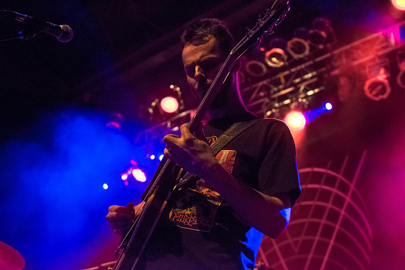 Bayonne, a stage name for Roger Sellers, brought an entertaining opening set to engage fans before the main event. As the long line in the bar grew, Bayonne serenaded the crowd with his pop tunes to start the night. Next up was Beach Slang, a part-punk, part-pop band started in 2013. After a raucous previous performance in Salt Lake City last year that sparked rumors of the bands’ dissolution, they were back in full force to the joy of all their fans. As Beach Slang finished their set, all of the attendees that were sitting upstairs migrated to the dance floor in preparation for Minus the Bear.