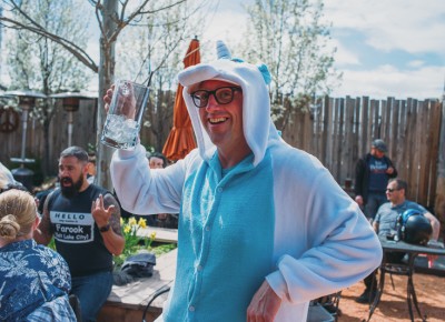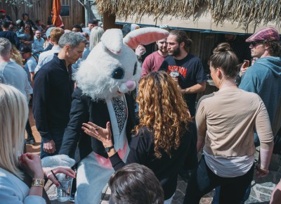 Festivities included vinyl-spinning DJs, a raffle, hat contest, performances, dancing, special drink offerings as well as a Garage on Beck buffet, including their signature fried funeral potatoes! The venue was packed both inside and out on the patio with people eager to participate in the yearly event which heralds in the arrival of Spring—all while helping others. The sun was shining, the Easter Bunny made an appearance and a wonderful time was had by all.