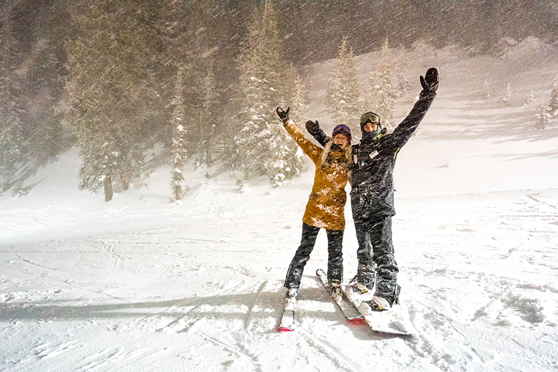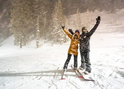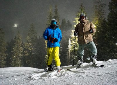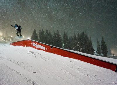 The snowflakes came down lightly as skiers and snowboarders arrived to Brighton Resort late Thursday afternoon, Dec. 15, when Brighton opened night riding for the season throughout its 200 acres, three lifts and main-mountain terrain park. Kids who finished school, others who finished work for the day and people who just like the night-ride vibes showed for opening night, smiling. Ticket boxes were fully staffed. Live music by Moab’s Meander Cat started at Brighton’s bar and restaurant, Molly Greens. Night riding runs Monday through Saturday, 4–9 p.m.