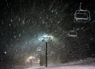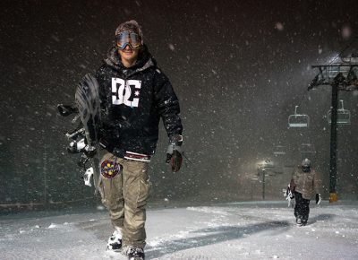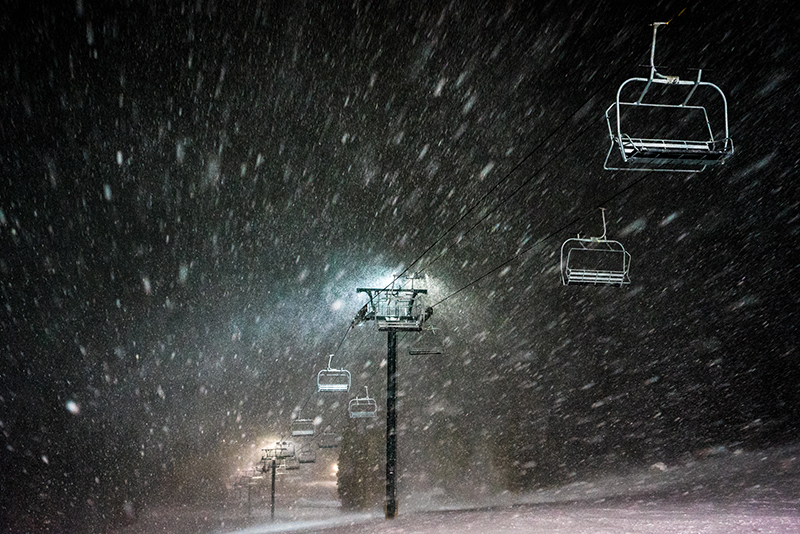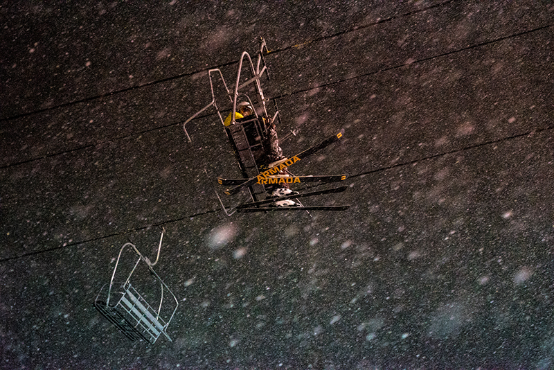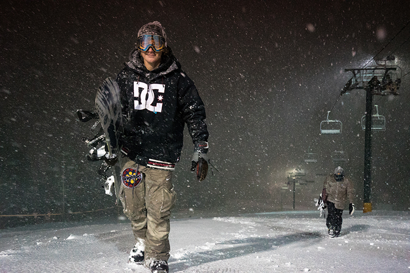 Sitting at the top of Majestic Lift, excited that I had the run completely to myself. The ambience of the runs at night created gigantic smiles and wide eyes. Photo: Jo Savage // @SavageDangerWolf