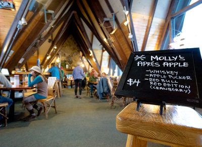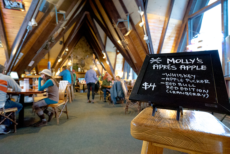 People hung out at Molly Greens, eating plates of nachos, hot savory soups and other fixings while drinking delicious holiday cocktails and local beer from Uinta Brewery. I stopped in Molly Greens to listen to music, have a White Russian and warm my cold fingers. Meander Cat played their bluesy-Americana music with desert-influenced lyrics. Brighton has live music one or two days a week—check their website for the calendar.