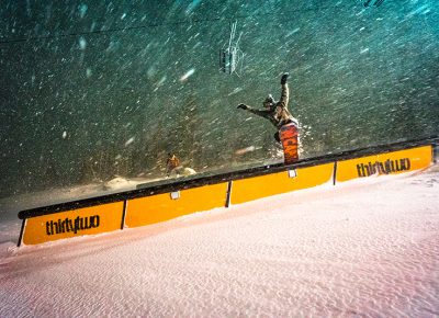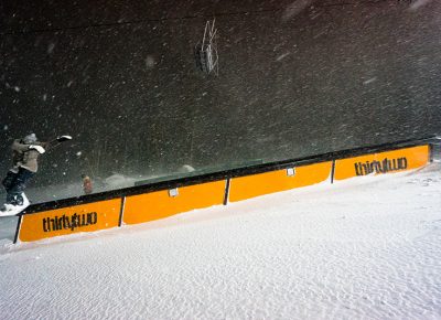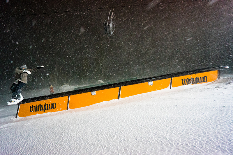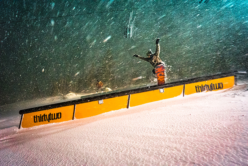 Pat Fava hits the rail at the terrain park with steez. Photo: Jo Savage // @SavageDangerWolf