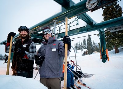 Skiers ride Brighton too! This pair shredded down the run shortly after they were haggled by the photographer. Photo: Jo Savage // @SavageDangerWolf