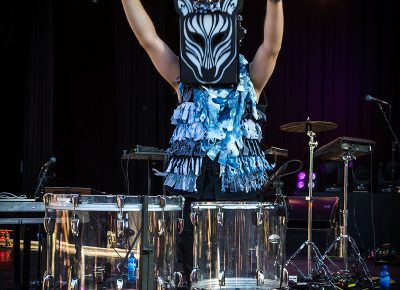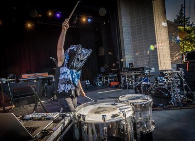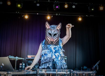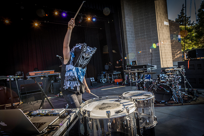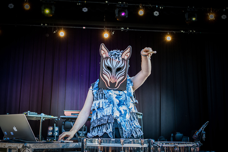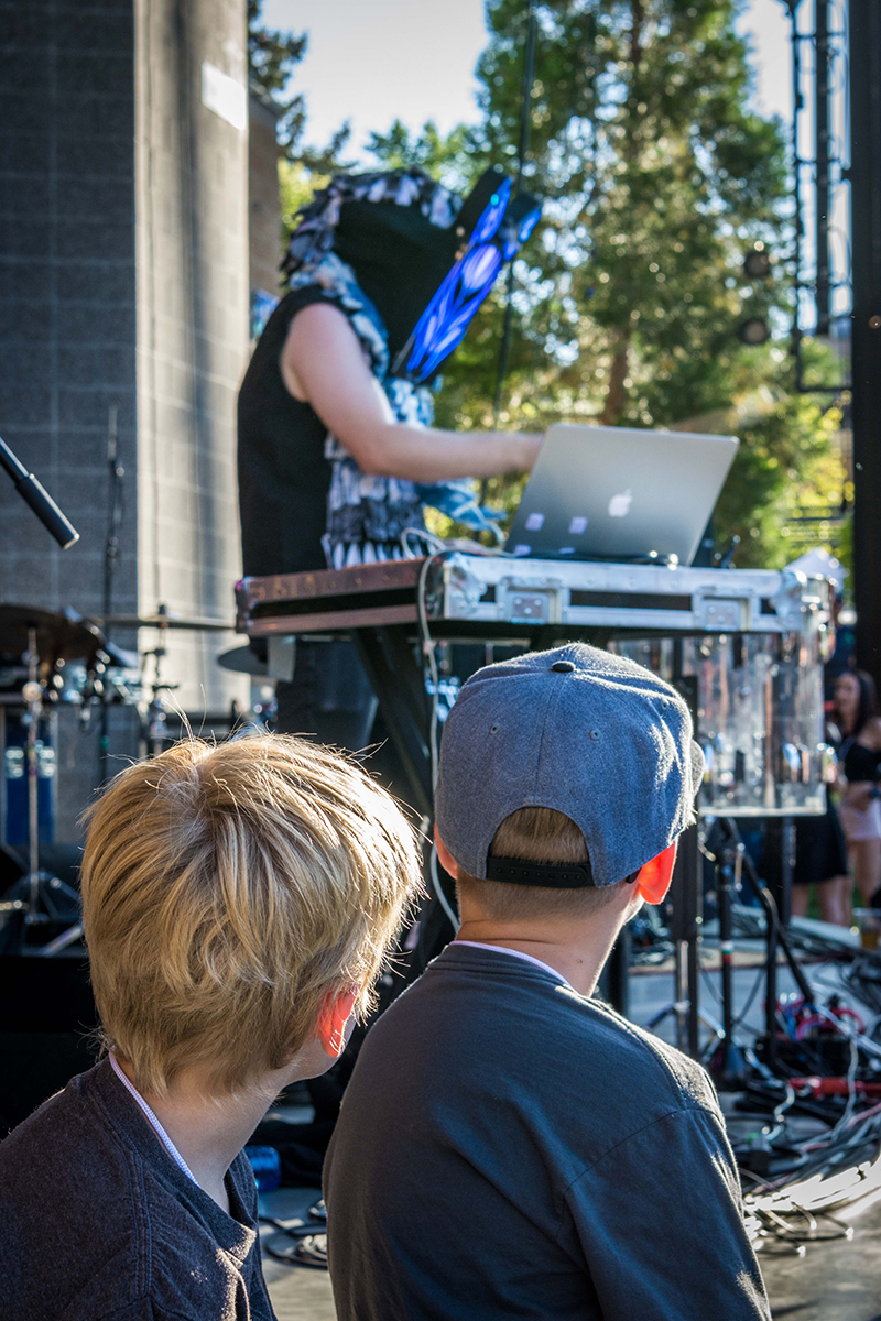 You could hear methodic drum beats from down the street as we were welcomed into the venue by the floating electronic music of Mooninite, the performing name of local artist Andrew Aguilera. Next on was electronic hybrid act Slow Magic. His trademark mask list up in the sun as he carried his drums through the crowd and played among his fans. Young kids sat on the front of the stage enjoying the music up close. Throughout, crowds wandered the venue, eating and drinking from the many vendors at the show. As fans awaited Bonobo, the sun began to wane on the summer solstice.