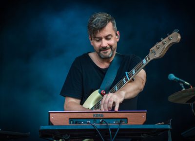 Amid flashing lights, Bonobo and his band walked onstage. The best part of the whole show was seeing how much they enjoyed playing music together. The drummer and keyboardist would frequently jam out together, visibly enjoying their expressive, expansive music. Bonobo himself switched between the soundboard and the guitar, giving his fans an amazing, diverse set. As the sun set, the stage lights glowed brighter and twinkled in starry bursts. Bonobo brought out vocalist Szjerdene, who added her lilting voice to the group’s music. Szjerdene made an appearance at Bonobo’s last show in Utah, and her contribution was once again the perfect addition to the set.