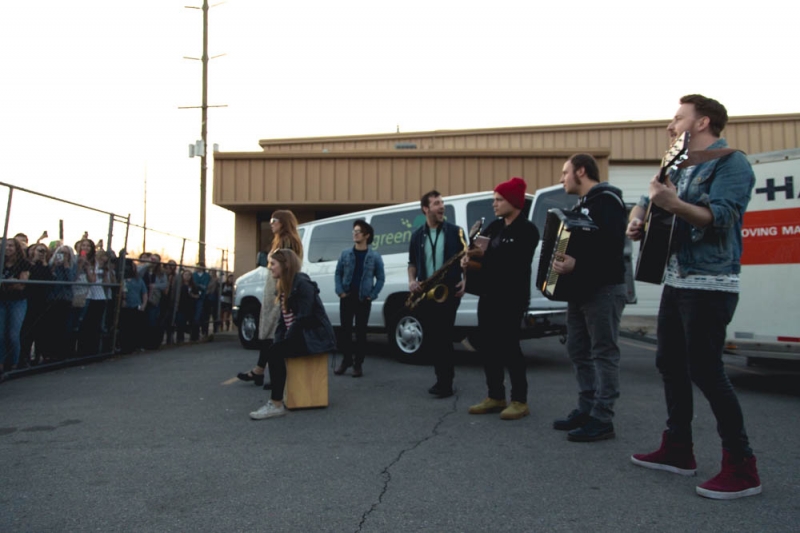 BØRNS and Handsome Ghost—opening artists to the group Misterwives who had to cancel their performance due to illness—treat the all but devastated crowd out side of The Complex to a inpromtu performance of acoustic songs. Taking to the parking lot of the planned venue with just their instruments, the groups played covers, old classics and tracks of their own to their Salt Lake City fans that were desperate for the musical experience.