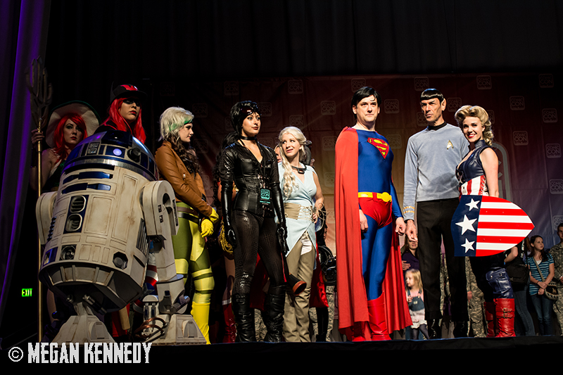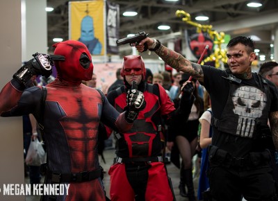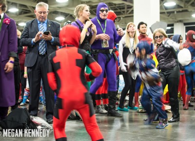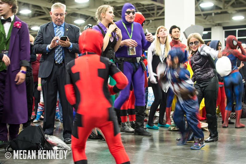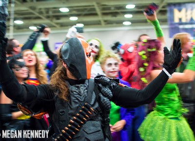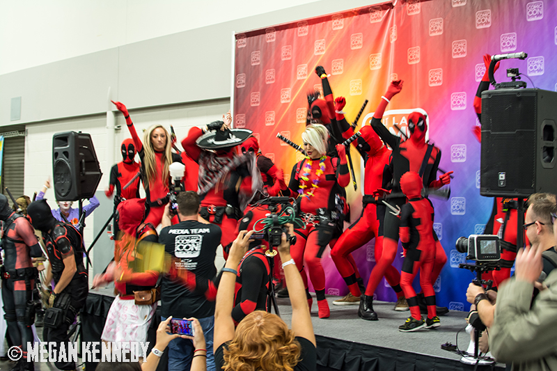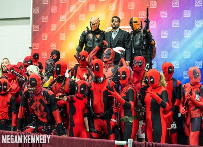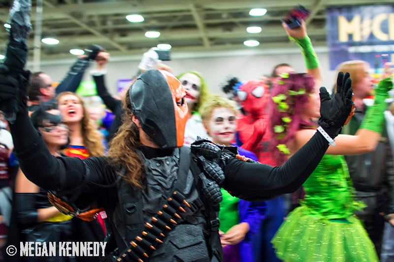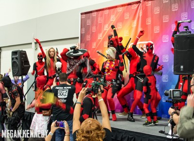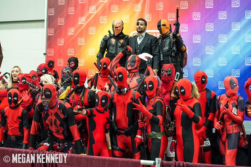 Manu invited all the Deadpools and Deathstrokes to the stage for a photo, and thought foolishly for a moment about picking a fight. Copyright Megan Kennedy // abuseofreason.com
