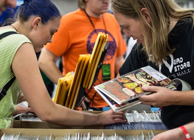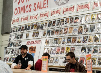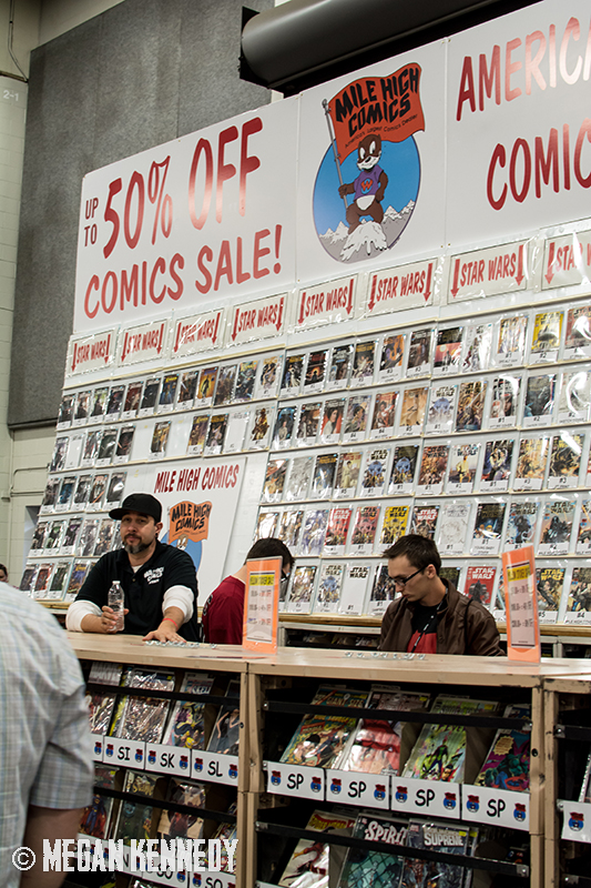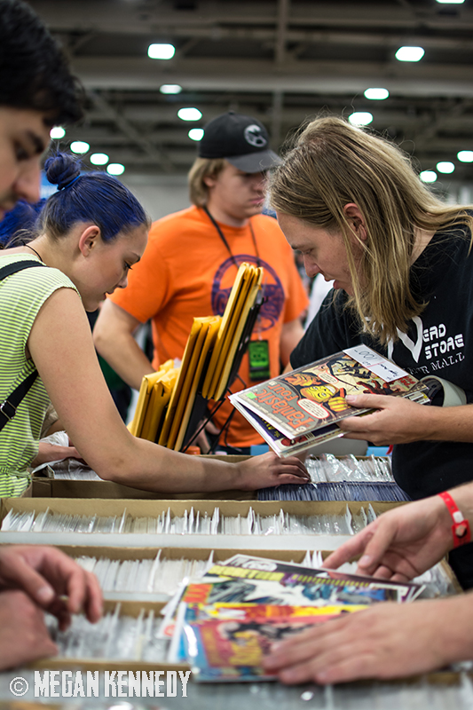 Roger (right) and Charles (center) Prows of The Nerd Store attend to comic-hungry fans. Copyright Megan Kennedy // abuseofreason.com