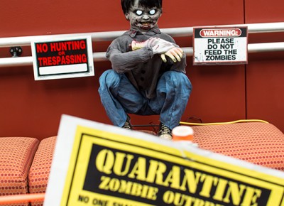 This little guy greeted those waiting in line for the Zombie Laser Tag. Look at his cute little Chucks!! Copyright Megan Kennedy // abuseofreason.com