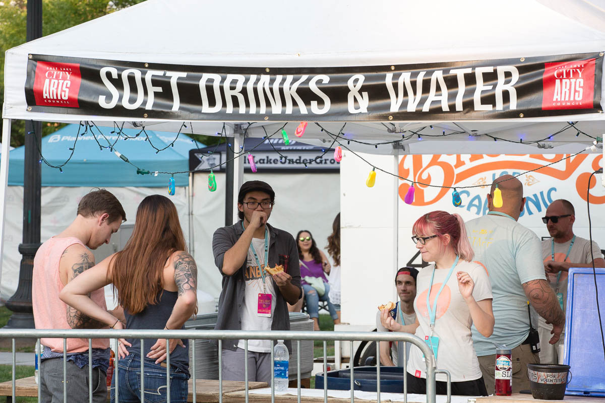 In the summertime, Salt Lake City brings life to the downtown Pioneer Park. When it’s not the weekend’s Downtown Farmer’s Market, it must be Thursday’s Twilight Concert Series. Thousands of people from all over the Salt Lake Valley slowly poured into the musical arena, fenced off with plenty of beer and wine options and food trucks galore lining the grounds for the thousands of hungry guests. With gates open before any music begins, guests can visit merch booths bye Graywhale, Discrete, SLUG, x96 and City Weekly before snagging their spot at the front barricade to await the performances.